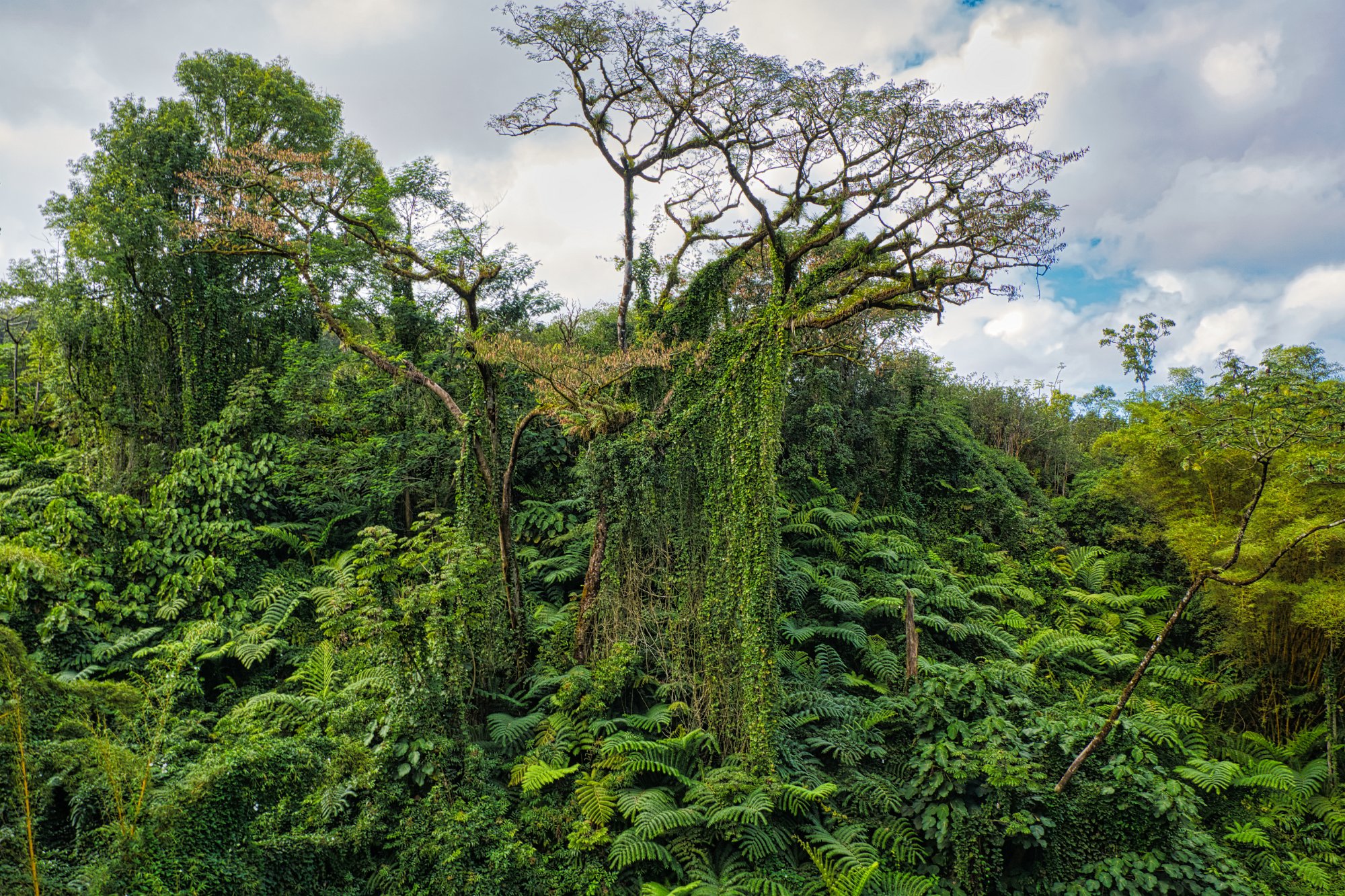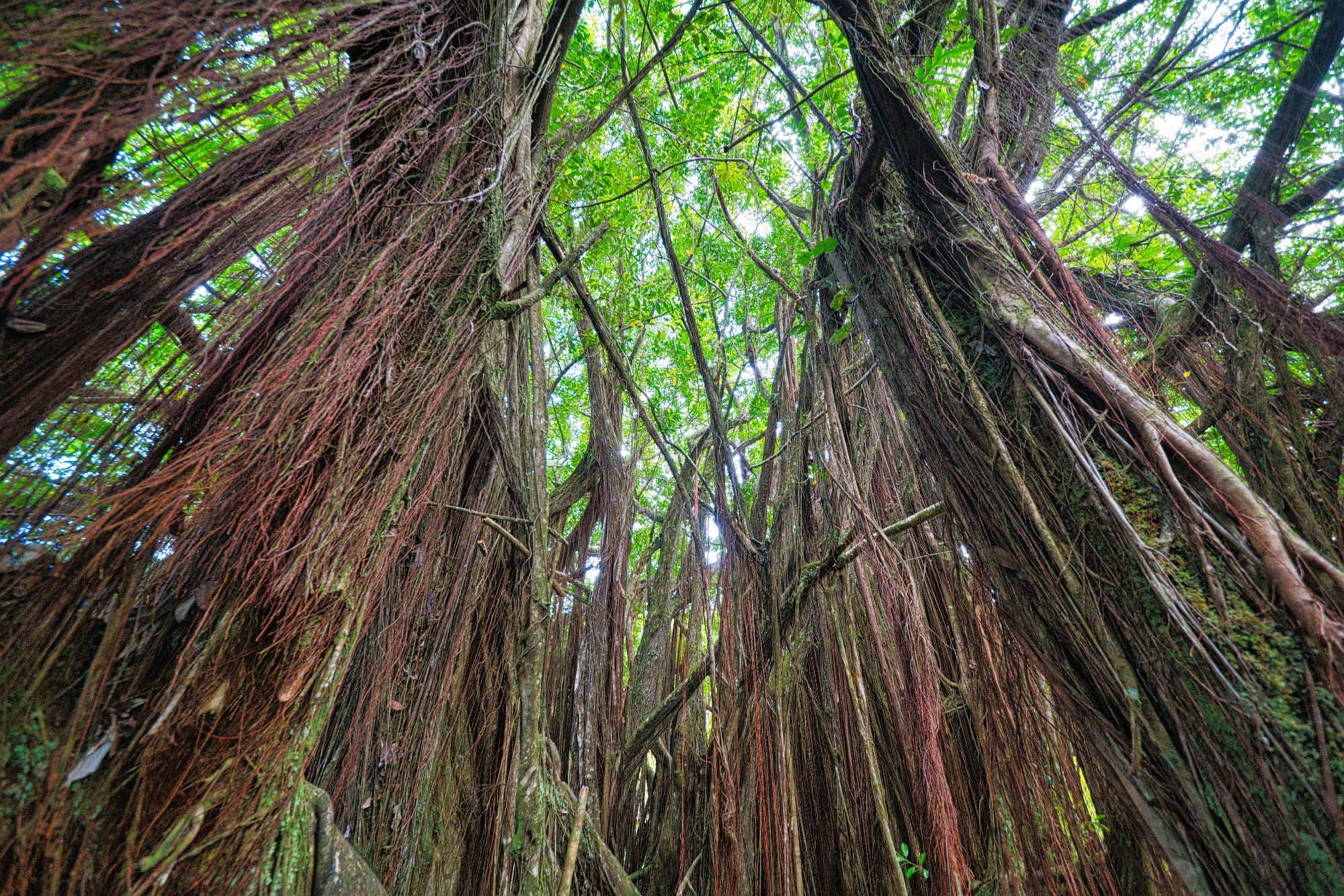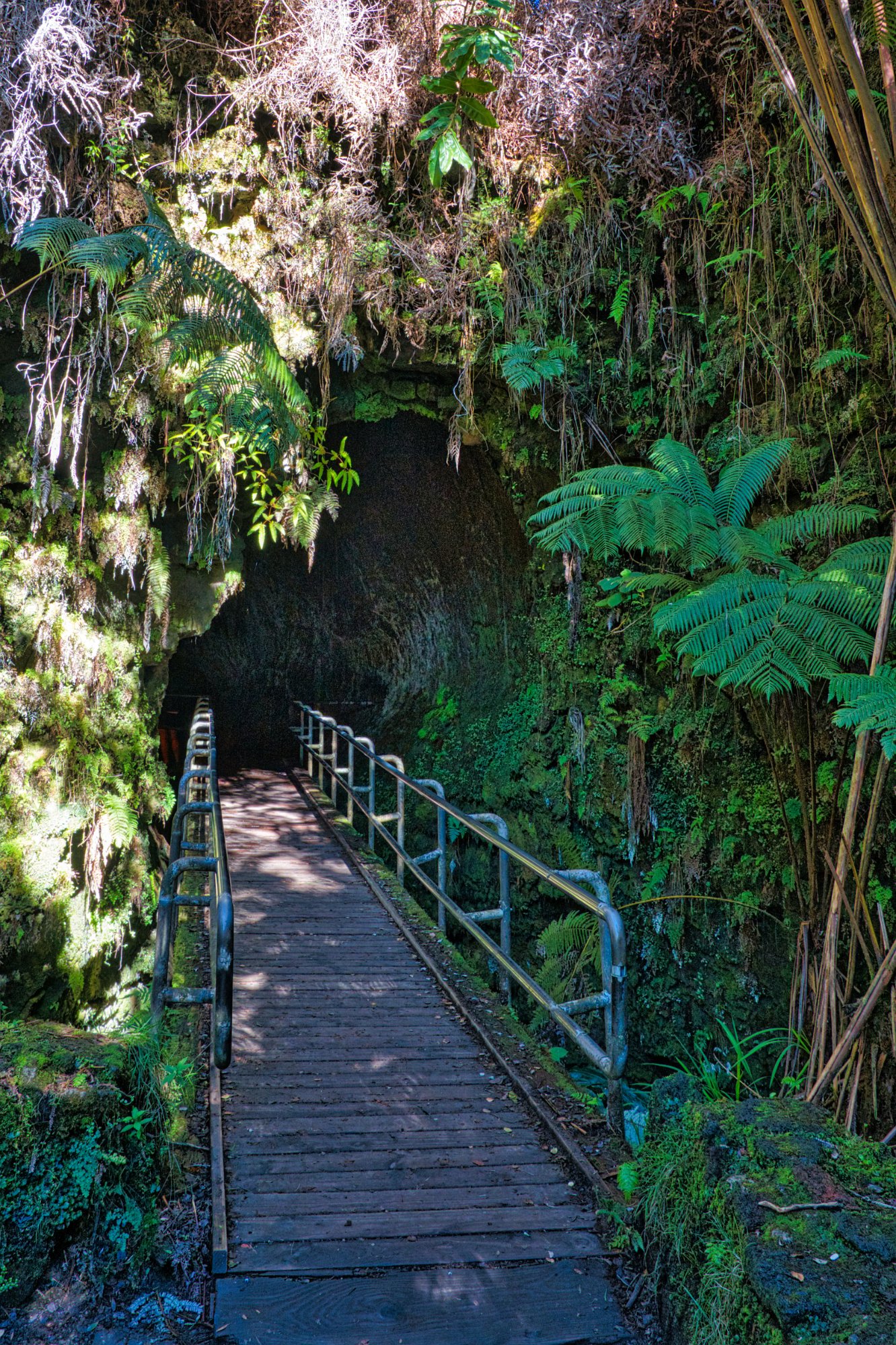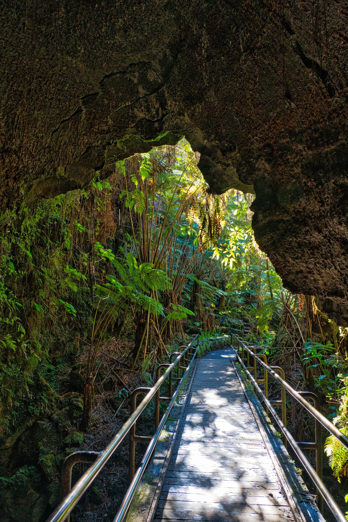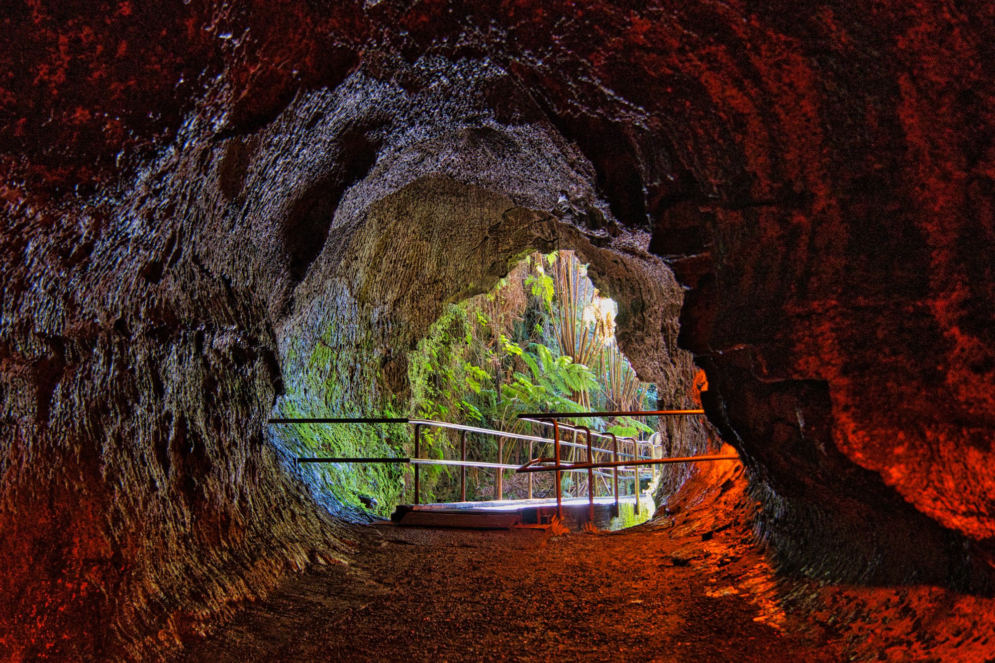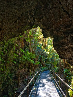 Nach der Durchquerung ging es die 100 Höhenmeter wieder nach oben und es erwarteten uns die Lavatunnel. Das sind Tunnel, wo während eines Ausbruches Lava geflossen ist, und sich dann beim Erkalten Hohlräume gebildet haben. Die Tunnel waren schon viel älter als ein Jahrhundert. Sie waren schon umgeben von einem Urwald.