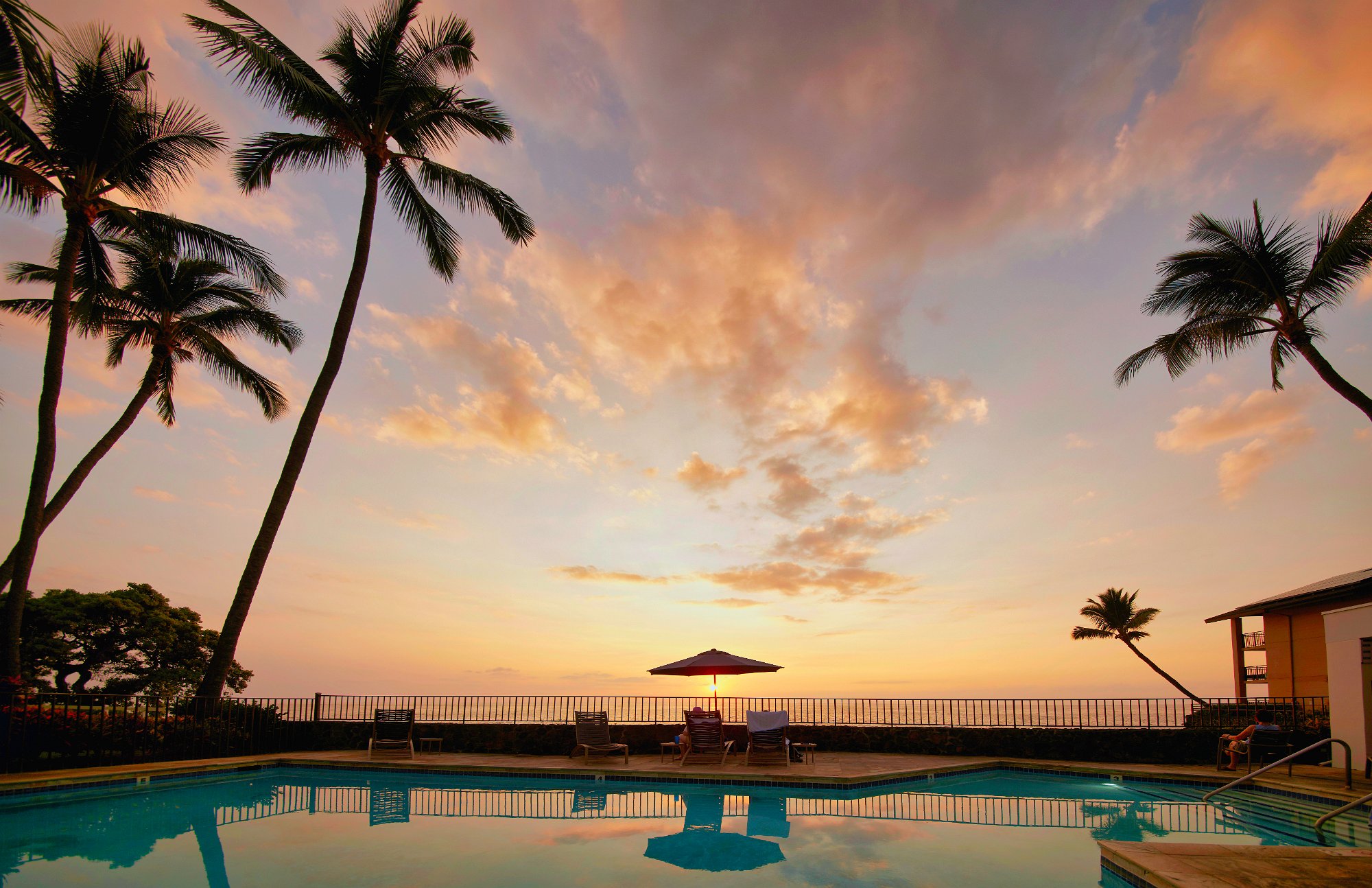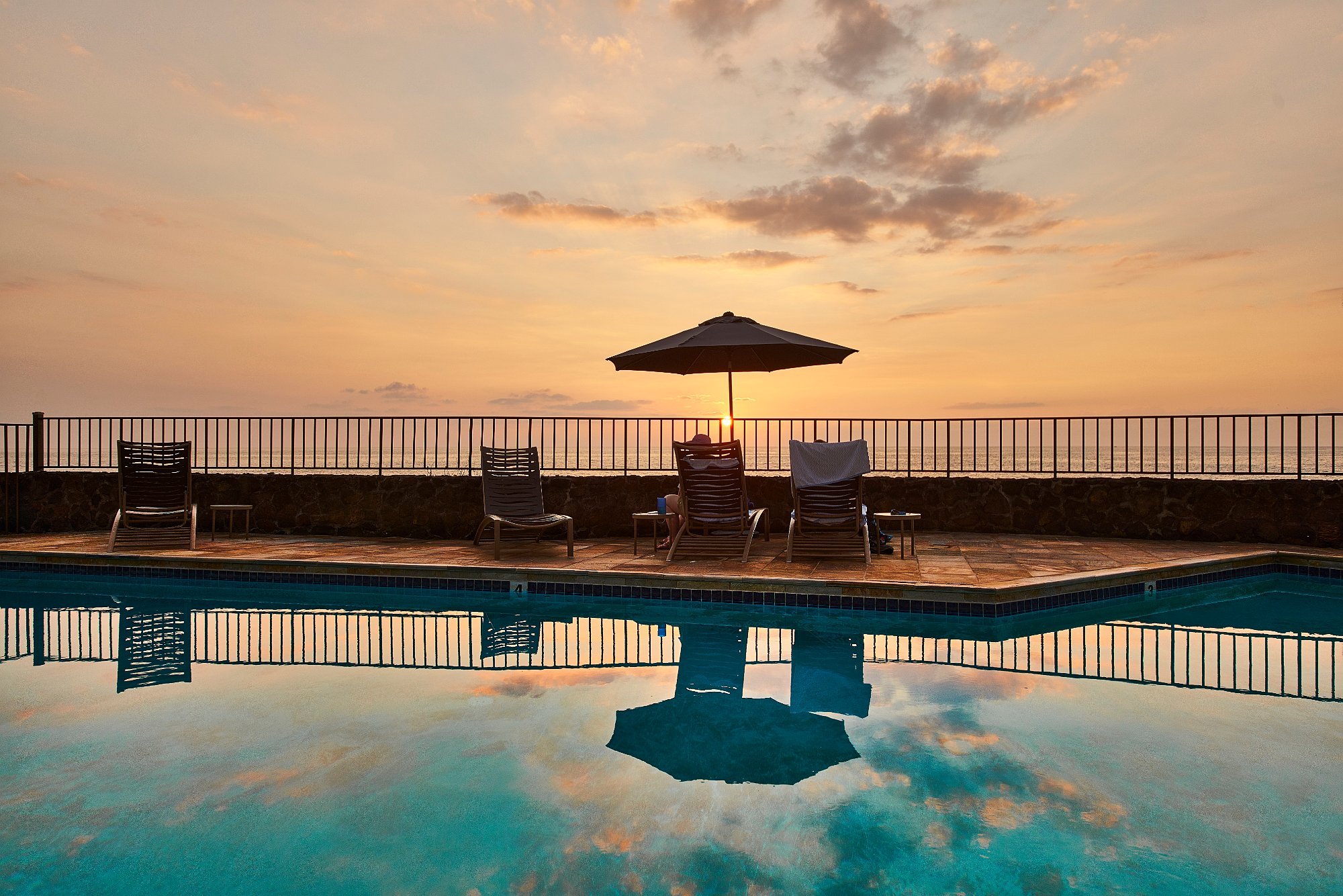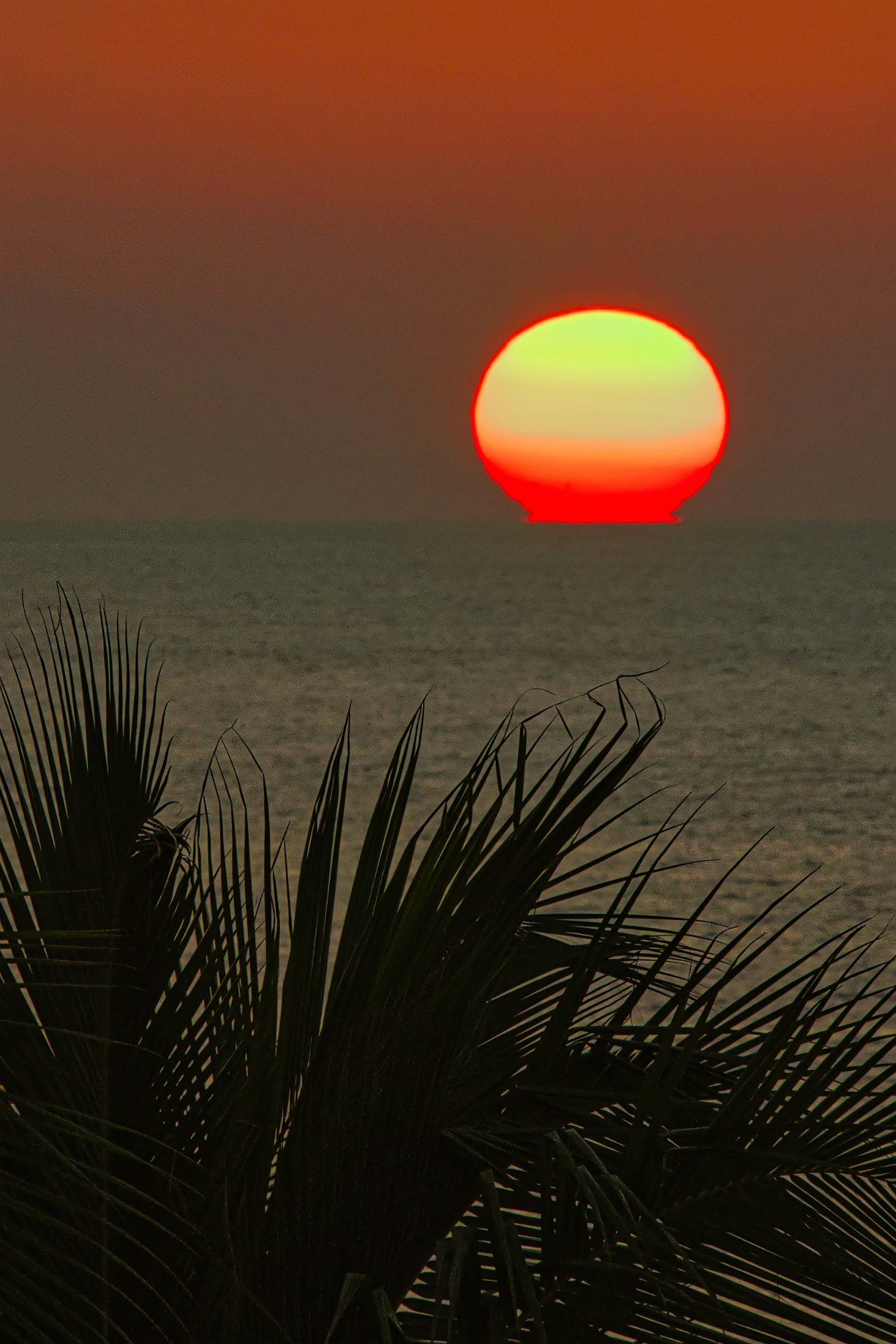 Wir kamen also noch rechtzeitig zum Sonnenuntergang Zuhause an. Ich sah Leute am Strand sitzen und wollte auch dorthin. In der Poolarea konnte man ziemlich bequem über die Mauer klettern und hatte dann freie Sicht, auf Gicht und Sonne.