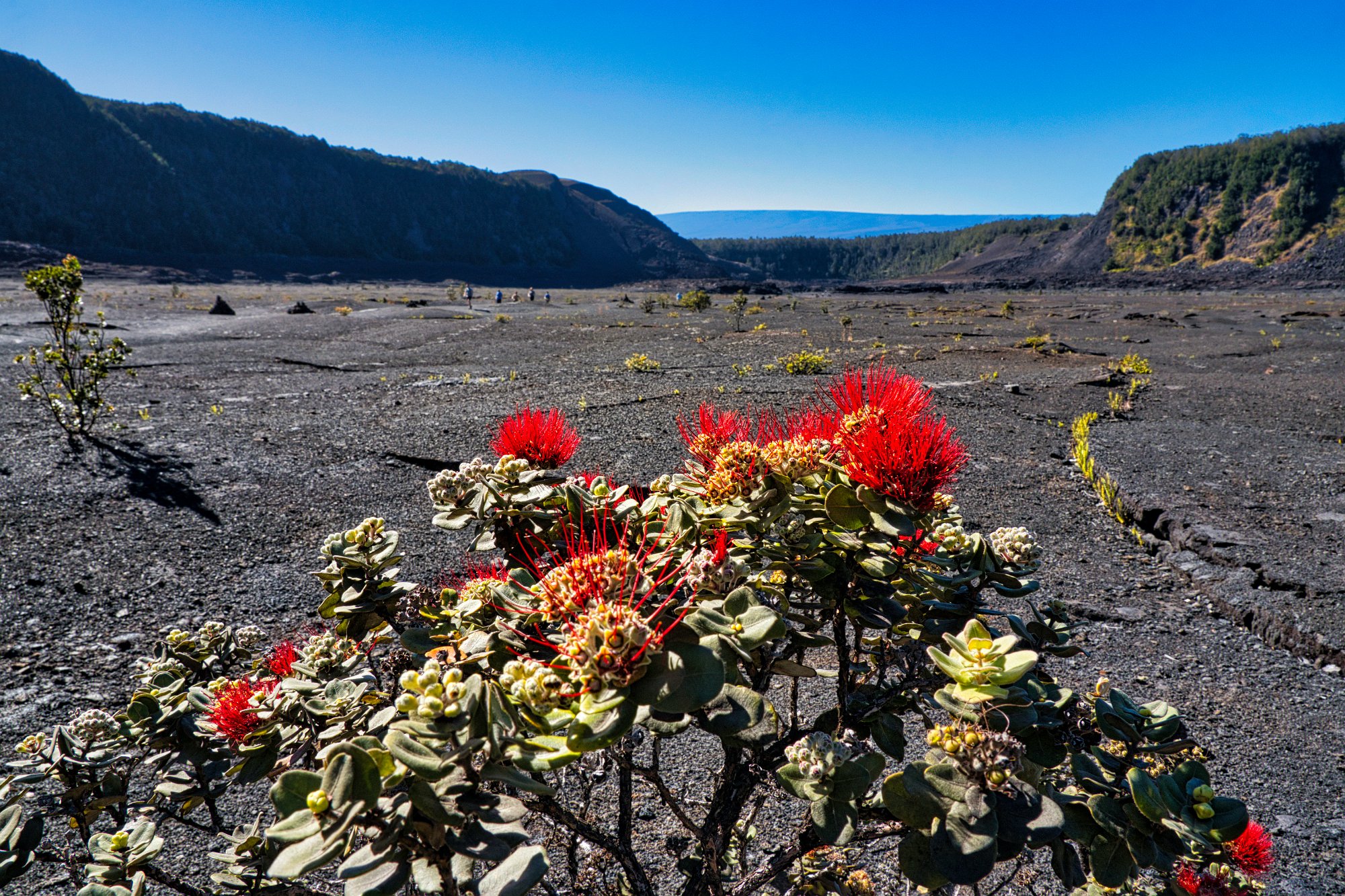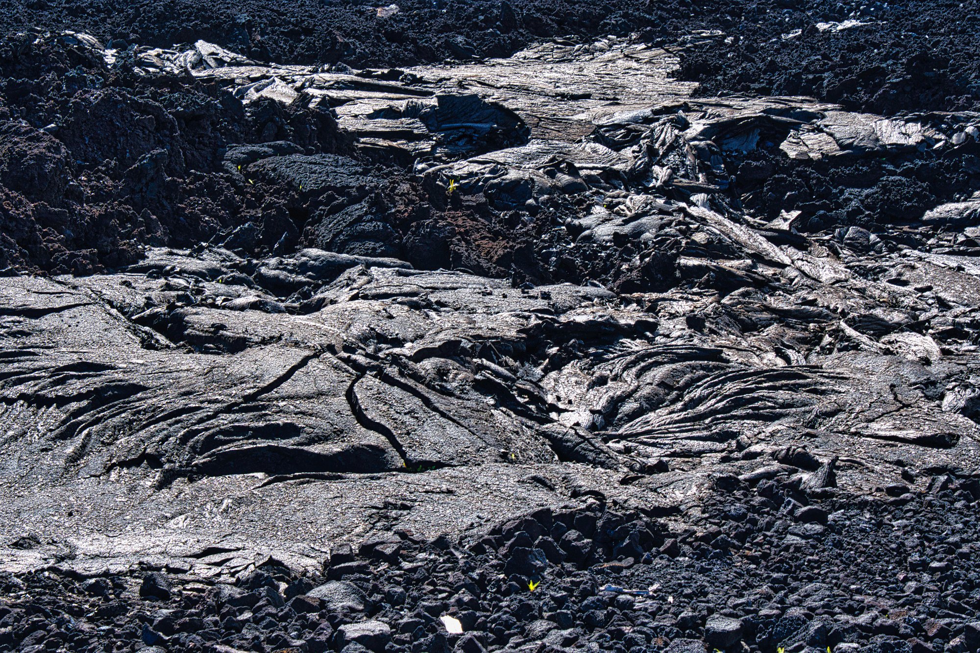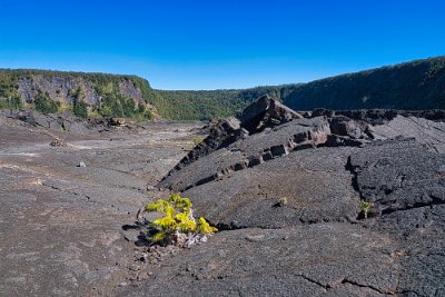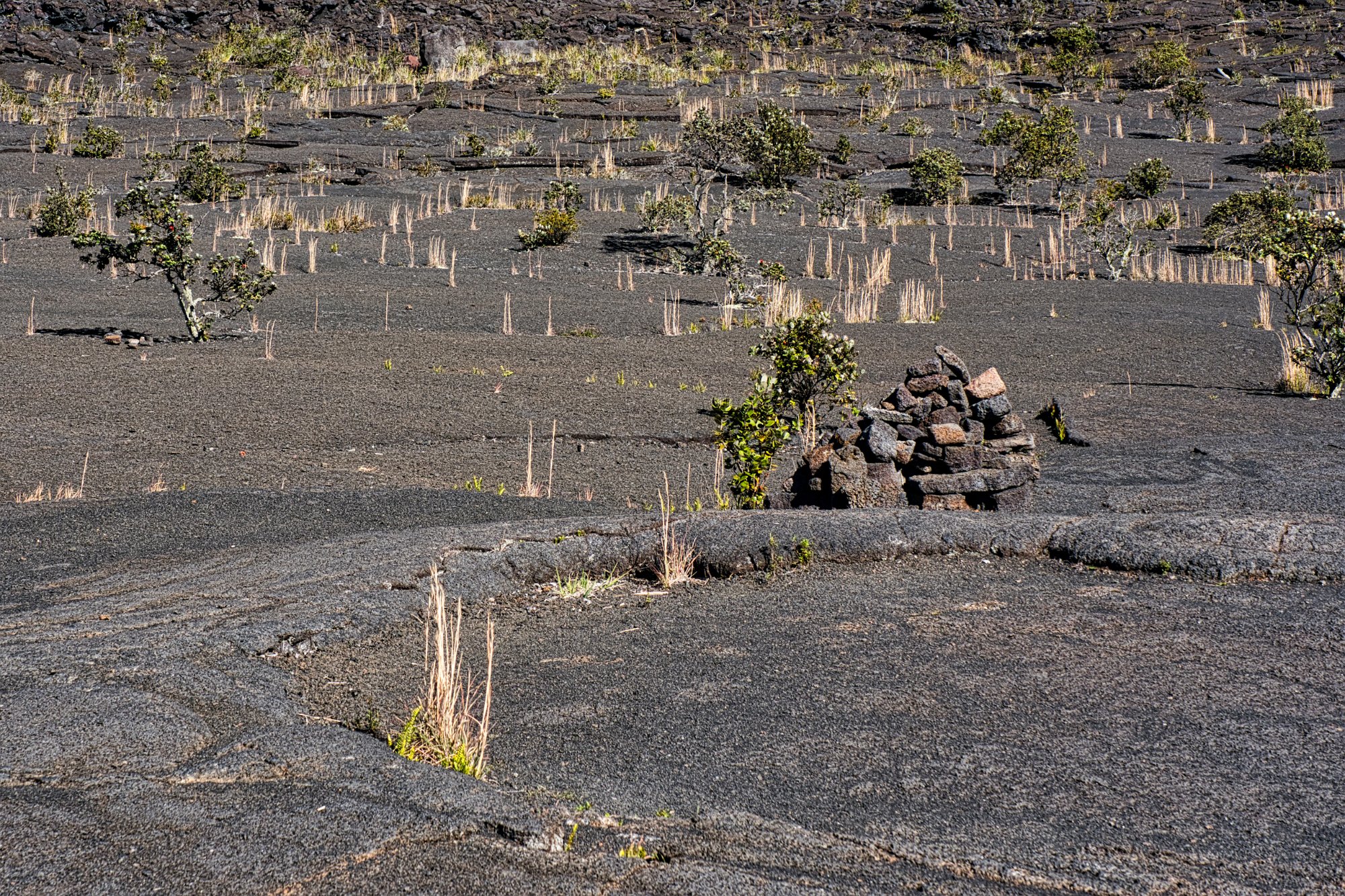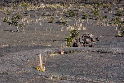 Wir stiegen also hinab und überquerten die erstarrte Lava. Hi und da hatten sich schon Pionierpflanzen angesiedelt.