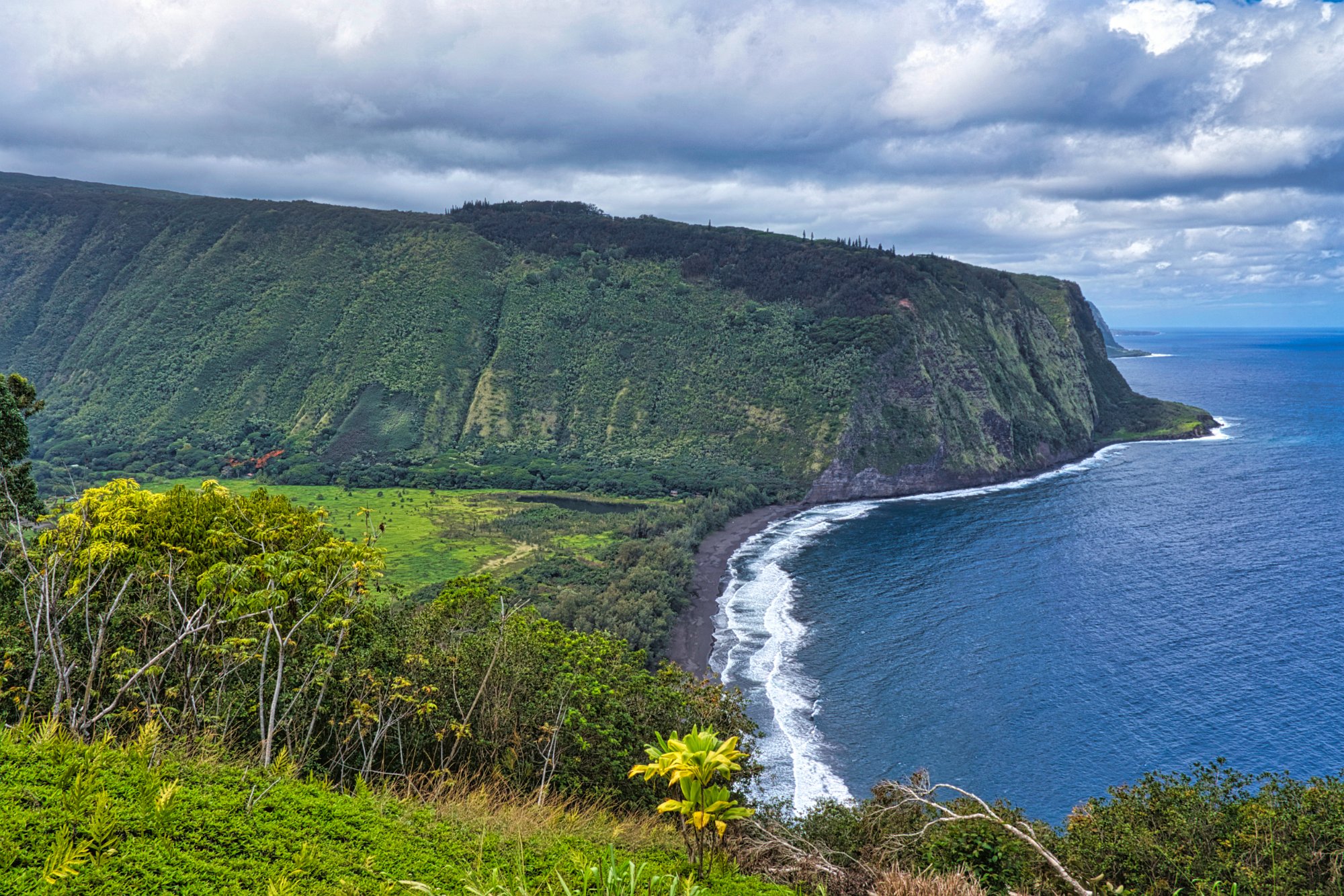 Tagesziel war eigentlich das Waipoi Valey. Wir erreichten den View Point noch vor zwei Uhr. Vom View Point ins Tal führte eine Straße mit 25%!!!! Gefälle. Nur 4*4 Autos mit Handschaltung durften die Straße befahren.