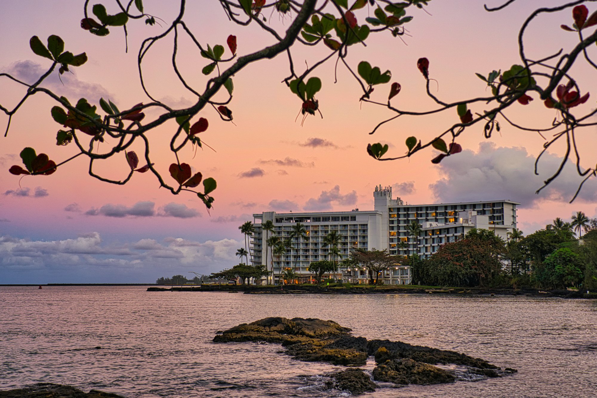 Das Hotel war nur 10 Minuten vom Flughafen entfernt und leicht zu finden. 11 Stock hoch, Hilton – 3 * Hotel, leider war auf Big Island kein Homestay möglich. Hier ist alles etwas kleiner als auf Maui, mal von dem Hotel abgesehen.