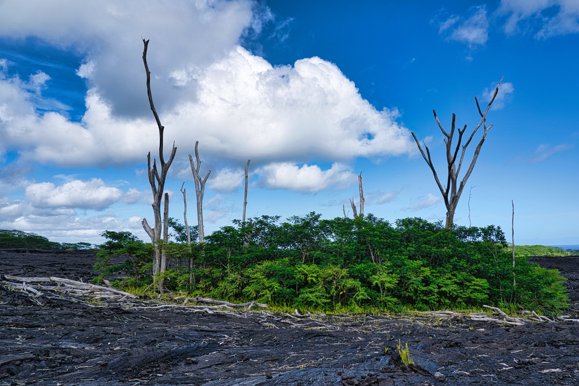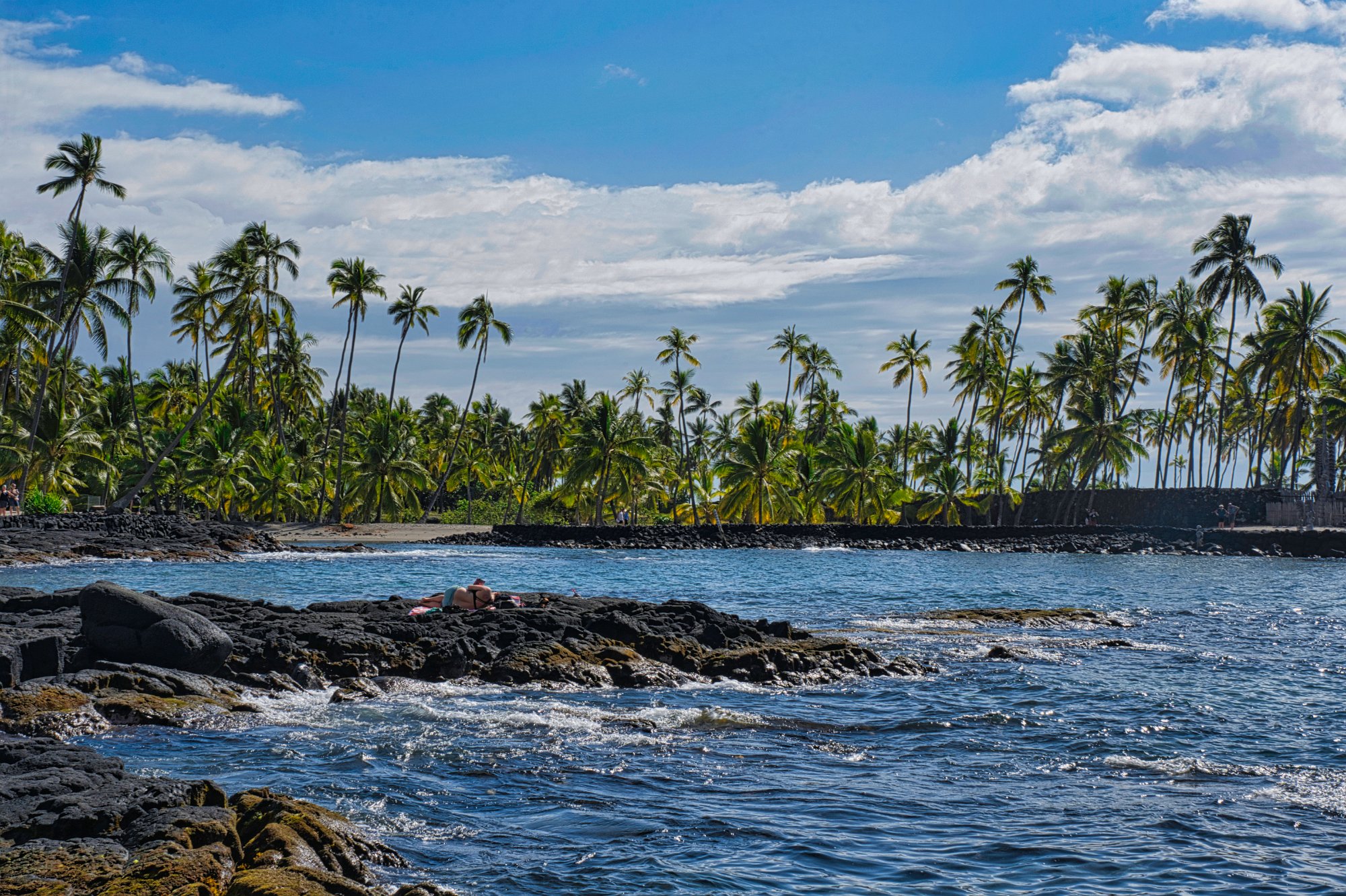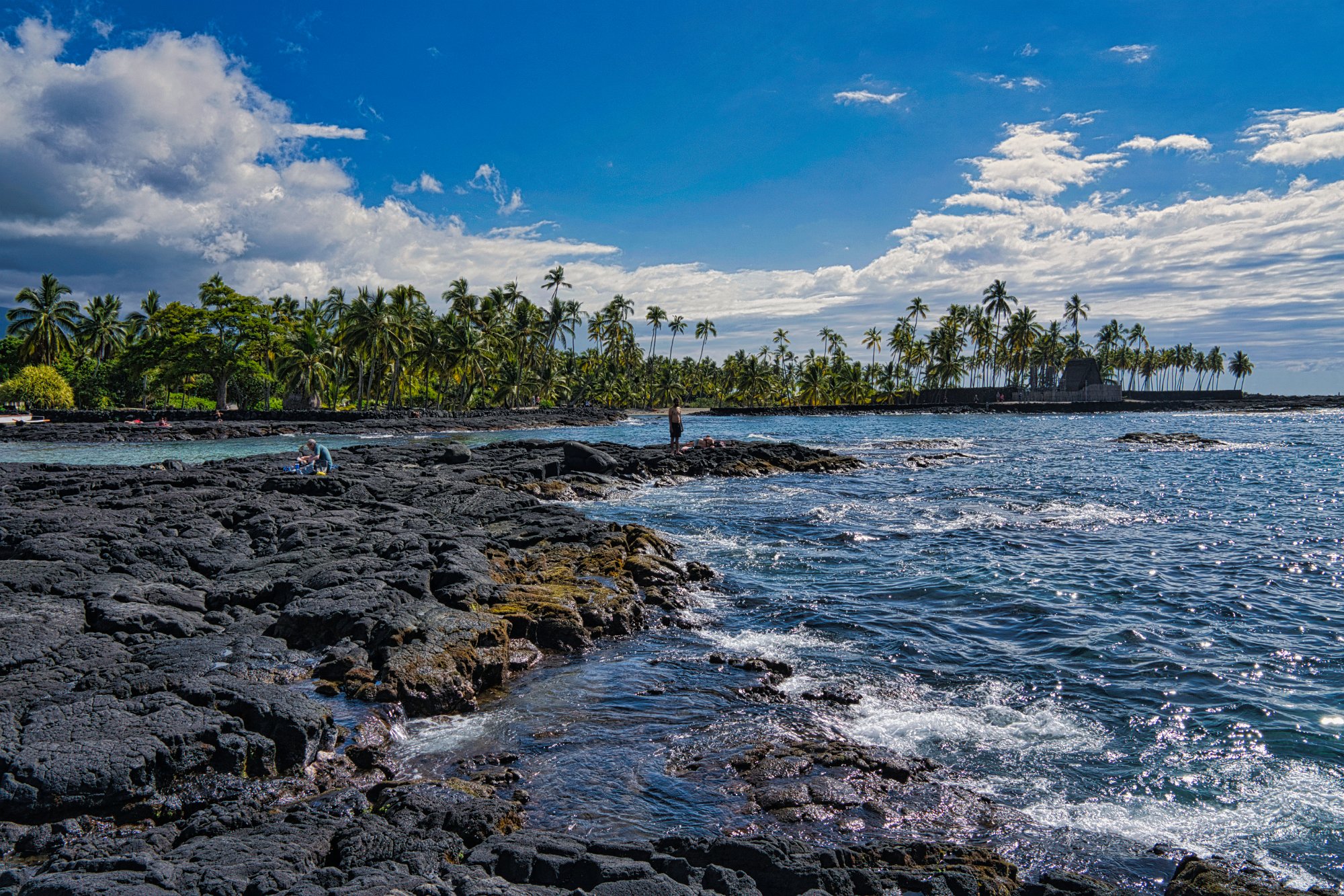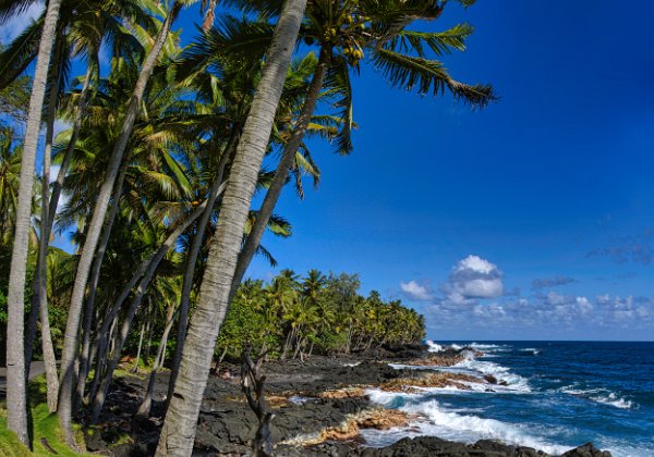 Die Küstenstraße entlang mit schönen Blicken auf das Meer, vorbei an einem Nudistenstrand (wohl dem einzigen in Amerika – denn eigentlich ist Nacktbaden verboten.), wieder zu den Lavafeldern, die 2018 hier ins Meer geflossen sind.
