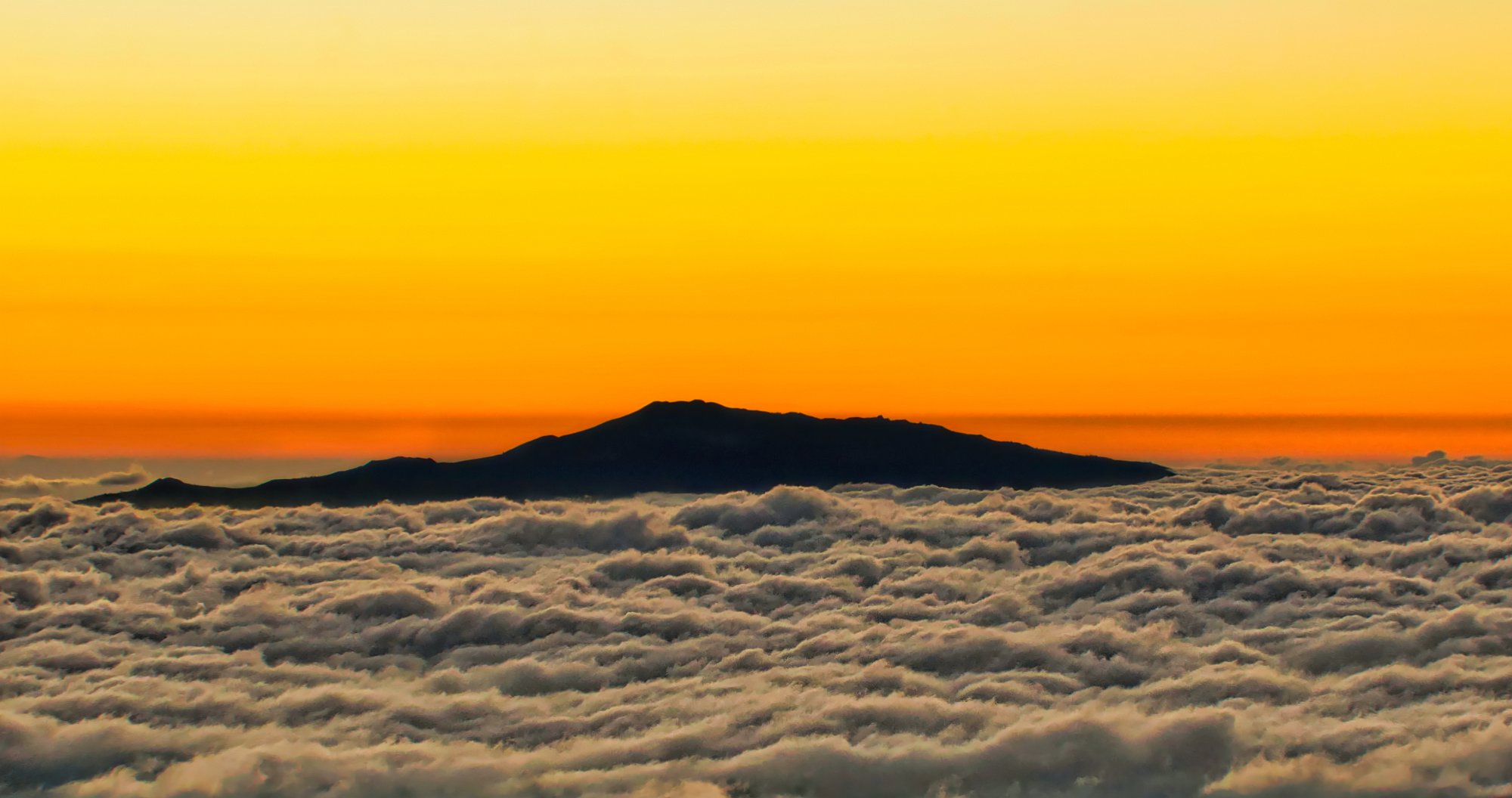 Wir erreichten das Visitor – Zentrum 17.45 Uhr. Damit man von hier weiter auf den Gipfel fahren durfte, musste man sich 30 Minuten akklimatisieren. Das Zentrum befand sich auf 2800 Meter Höhe, bis zum Gipfel waren es noch 1400 Höhenmeter. (30 Minuten Autofahrt). Wir hätten also den Sonnenuntergang nicht mehr geschafft, von oben anzuschauen. Die Alternative war ein kleiner Gipfel ganz in der Nähe des Visitorzentrum. Also stürmten wir dort hinauf und schauten mit vielen Menschen, wie die Sonne in den Wolken verschwand.