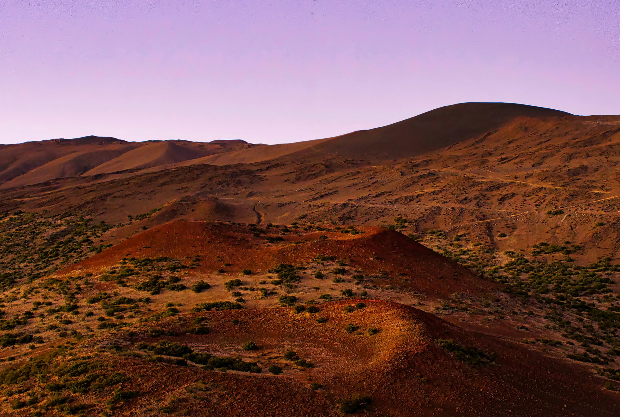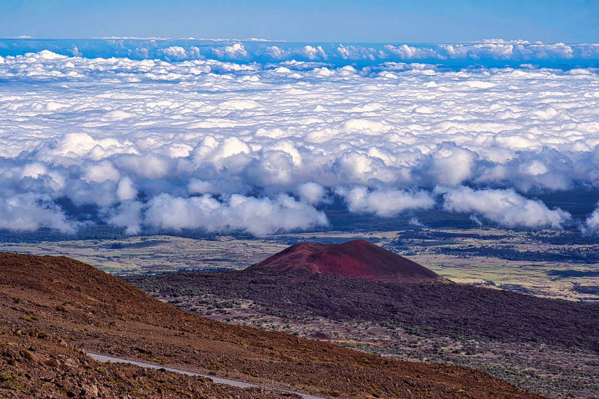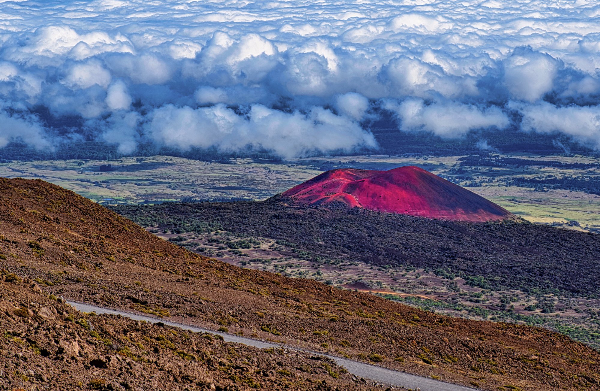 Der Weg führte nun immer entlang des Kraterrandes. Der Krater war nicht der Krater des Mauna Kea oder Mauna Loa, also einem der beiden die Insel dominierenden Vulkane.