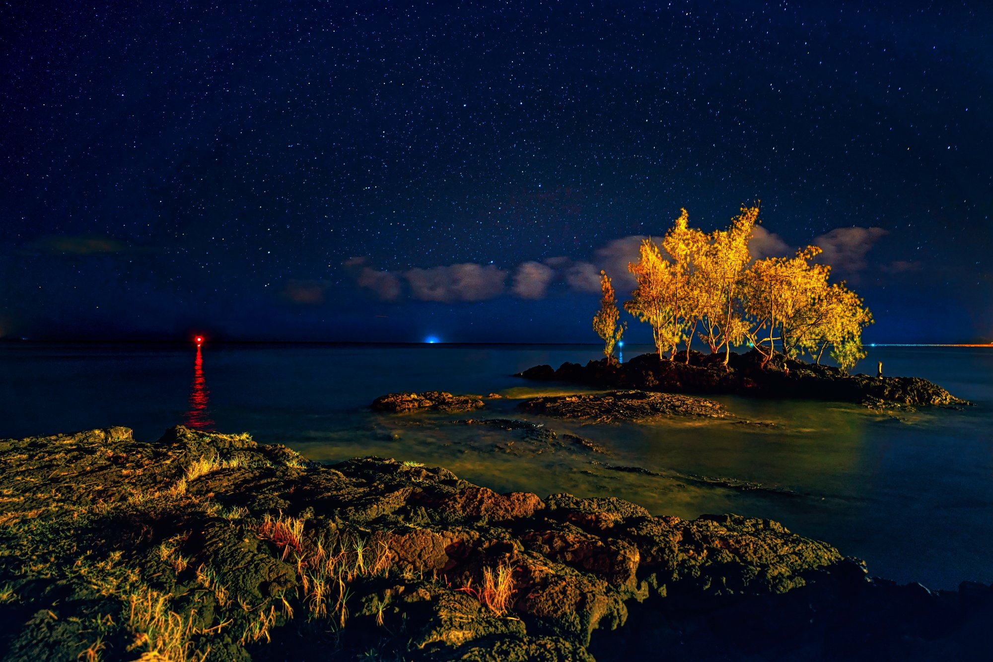 Da ich nun meine Sterne nicht fotografieren konnte, ging ich noch einmal heute Abend los und machte einige Aufnahmen. Für die Sterne ist es doch zu hell, na da blieb nur das Lieblingsmotiv – die Insel.