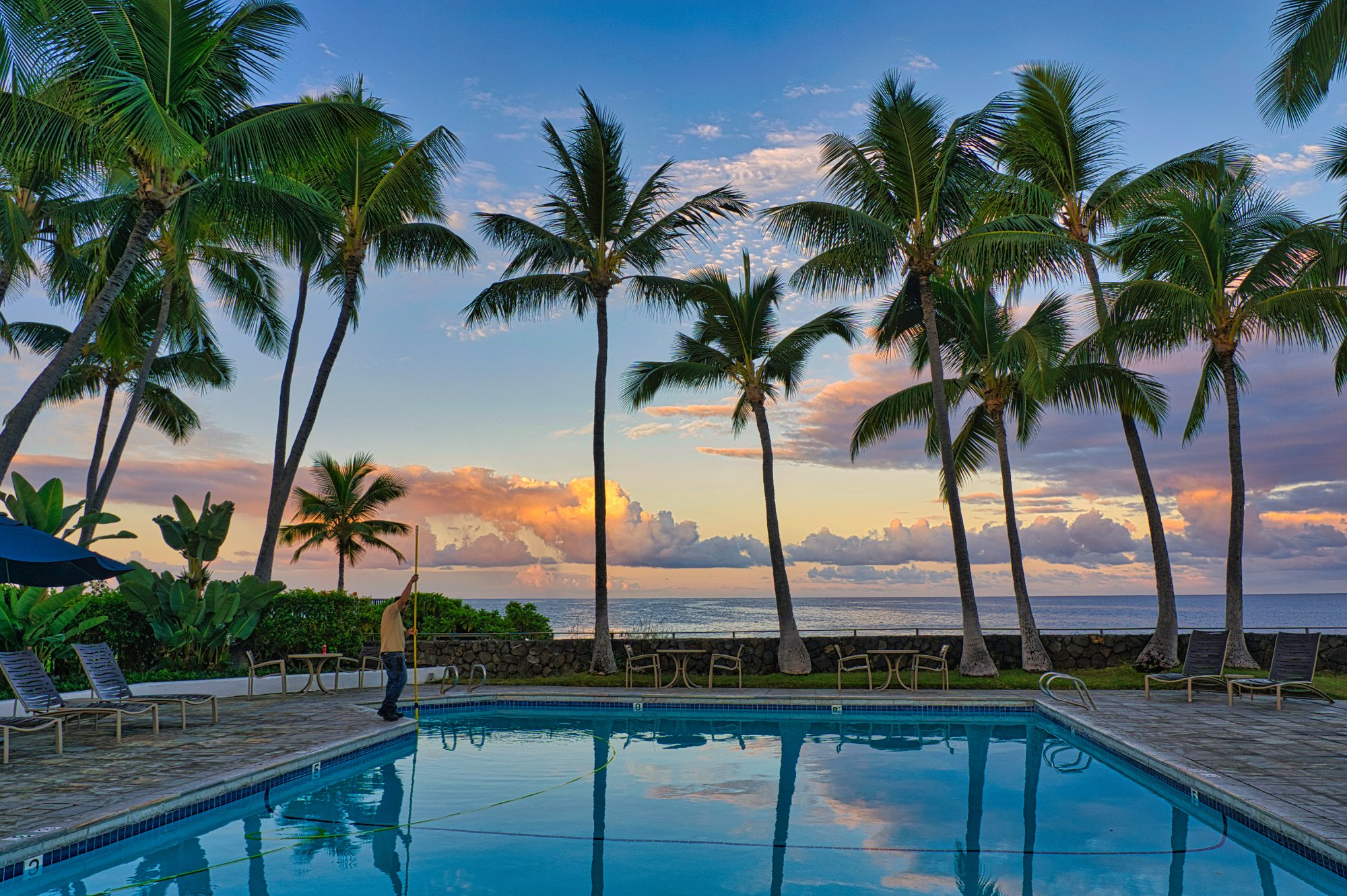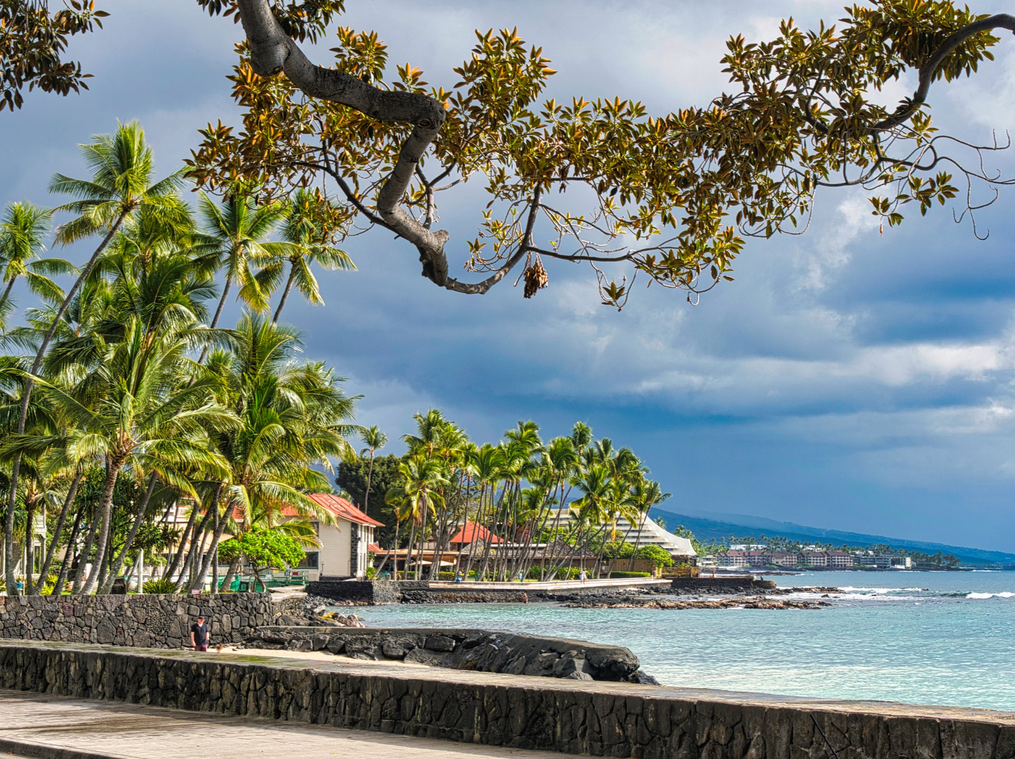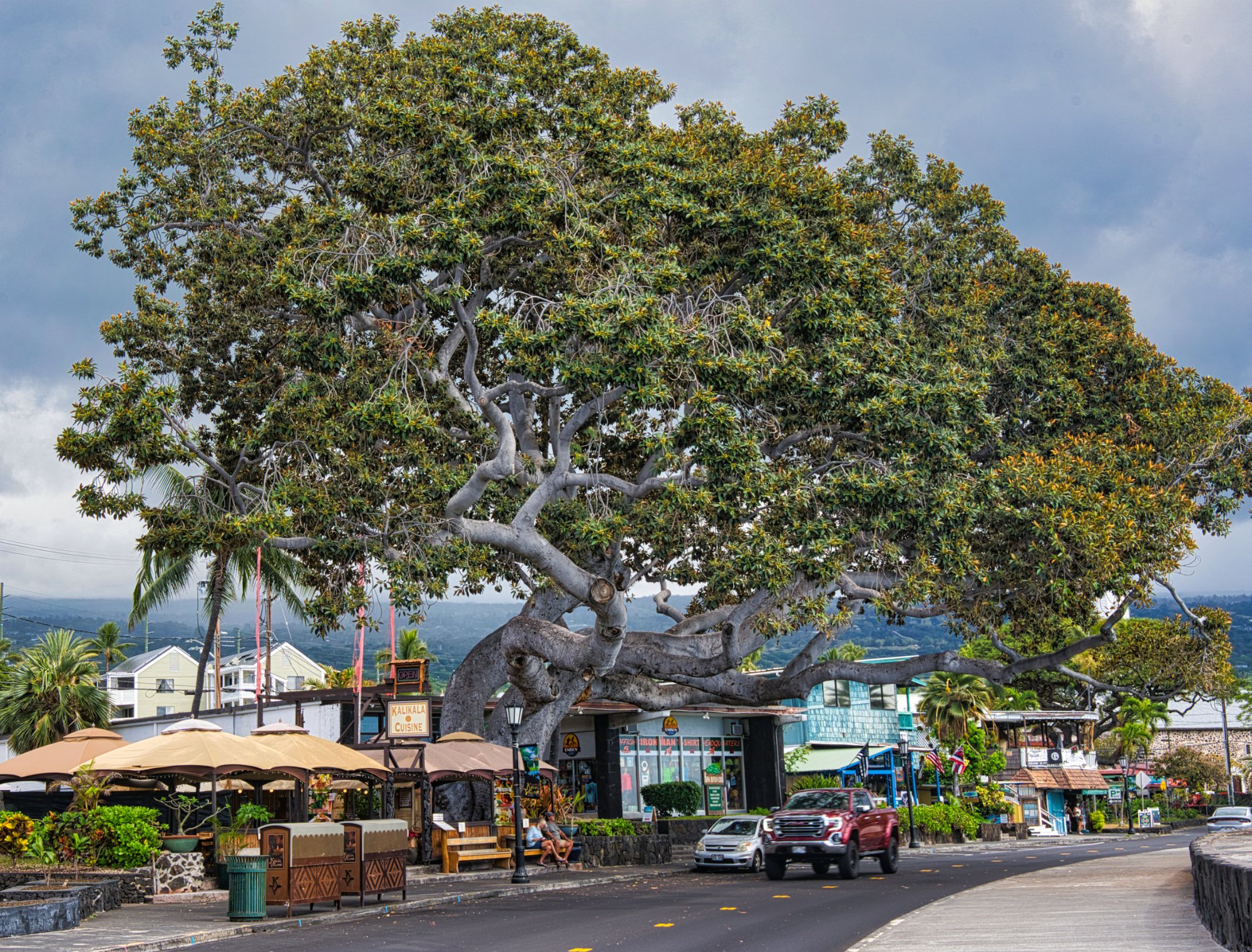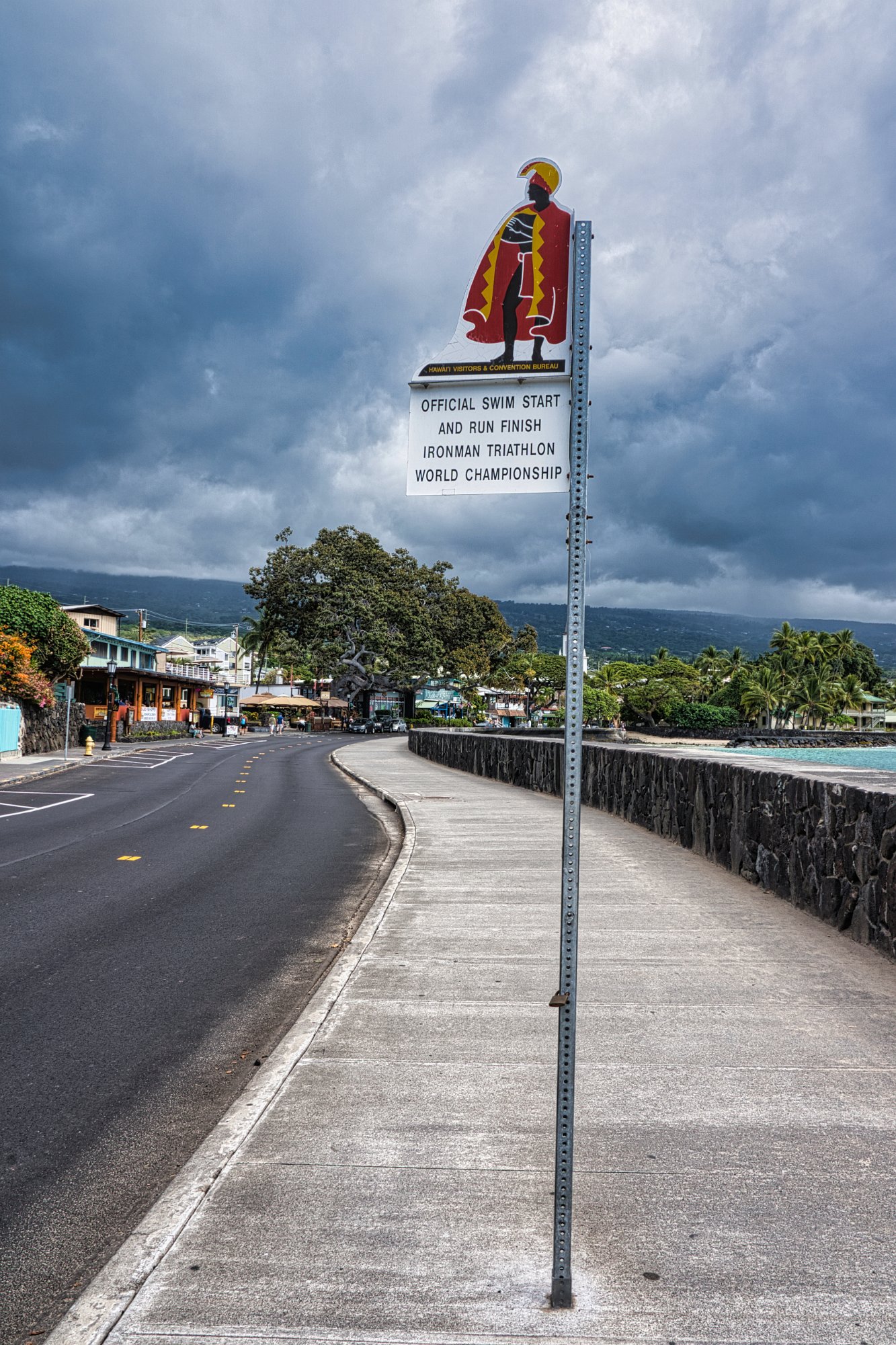 Mittagessen und dann Stadtbummel in Kona. Kona ist übrigens der Austragungsort des Iron Man. Darauf sind wir aber erst aufmerksam geworden, als wir auf der Uferpromenade das Start -/und Zielschild gesehen haben.