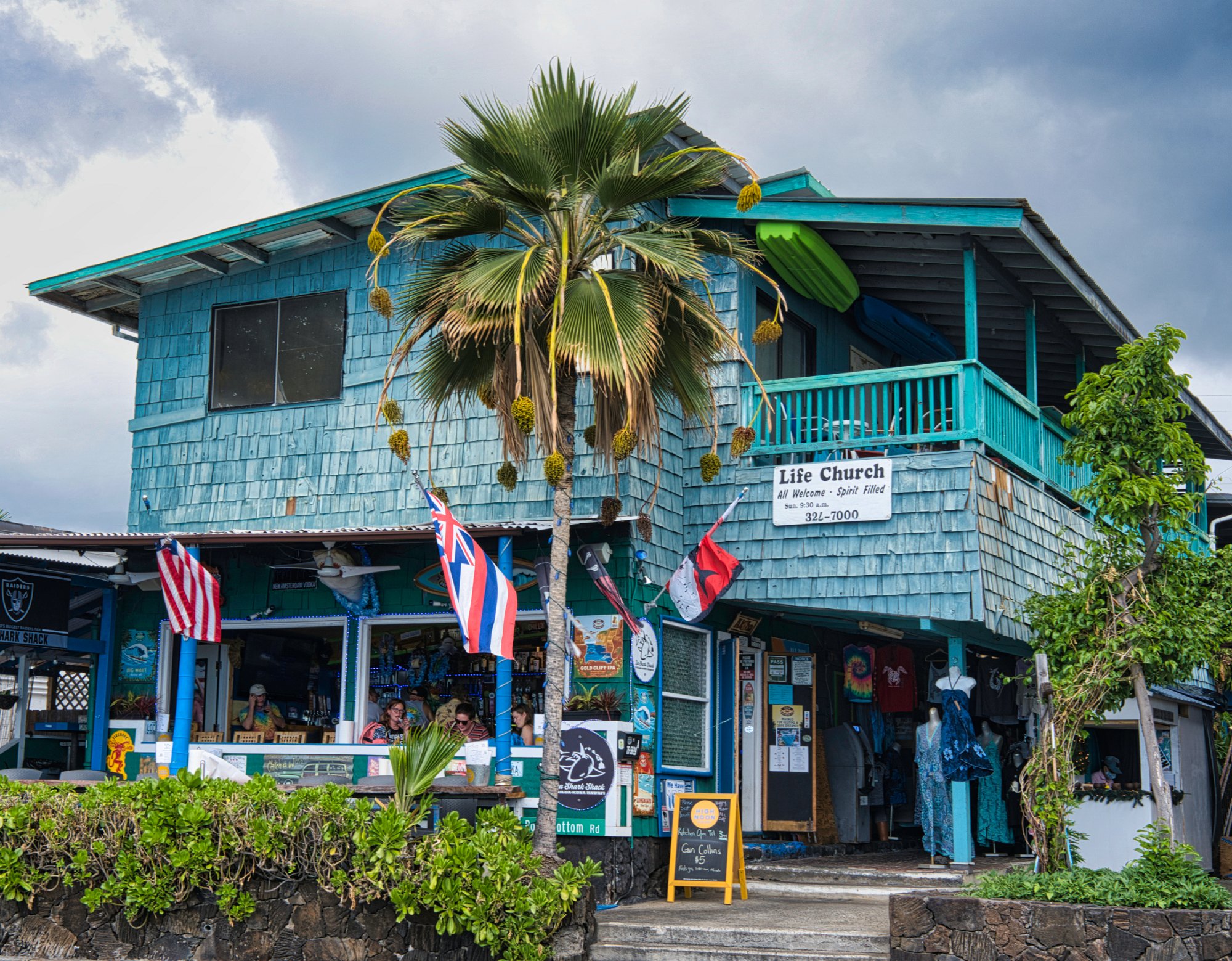 Kona ist die erste amerikanische Stadt, in der ich mich wohlgefühlt habe. Man konnte bummeln, für Toma gab es sogar einen Ukuleleladen, viele Boutiquen, Souvenirläden, aber auch ganz normale Restaurants, wo ich mich durchaus hätte zum Essen hinsetzen können. Und die Stadt hatte auch noch Charme. Hier hat das hawaiianische wohl das amerikanische übertüncht.