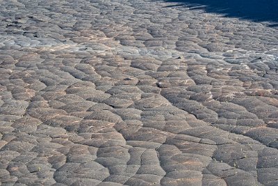 Wenn man von oben auf den Kessel hinabschaute, so sah die Fläche sehr glatt aus. Aber es hatten sich auch schon erste Blumen auf der schwarzen harten Oberfläche niedergelassen.