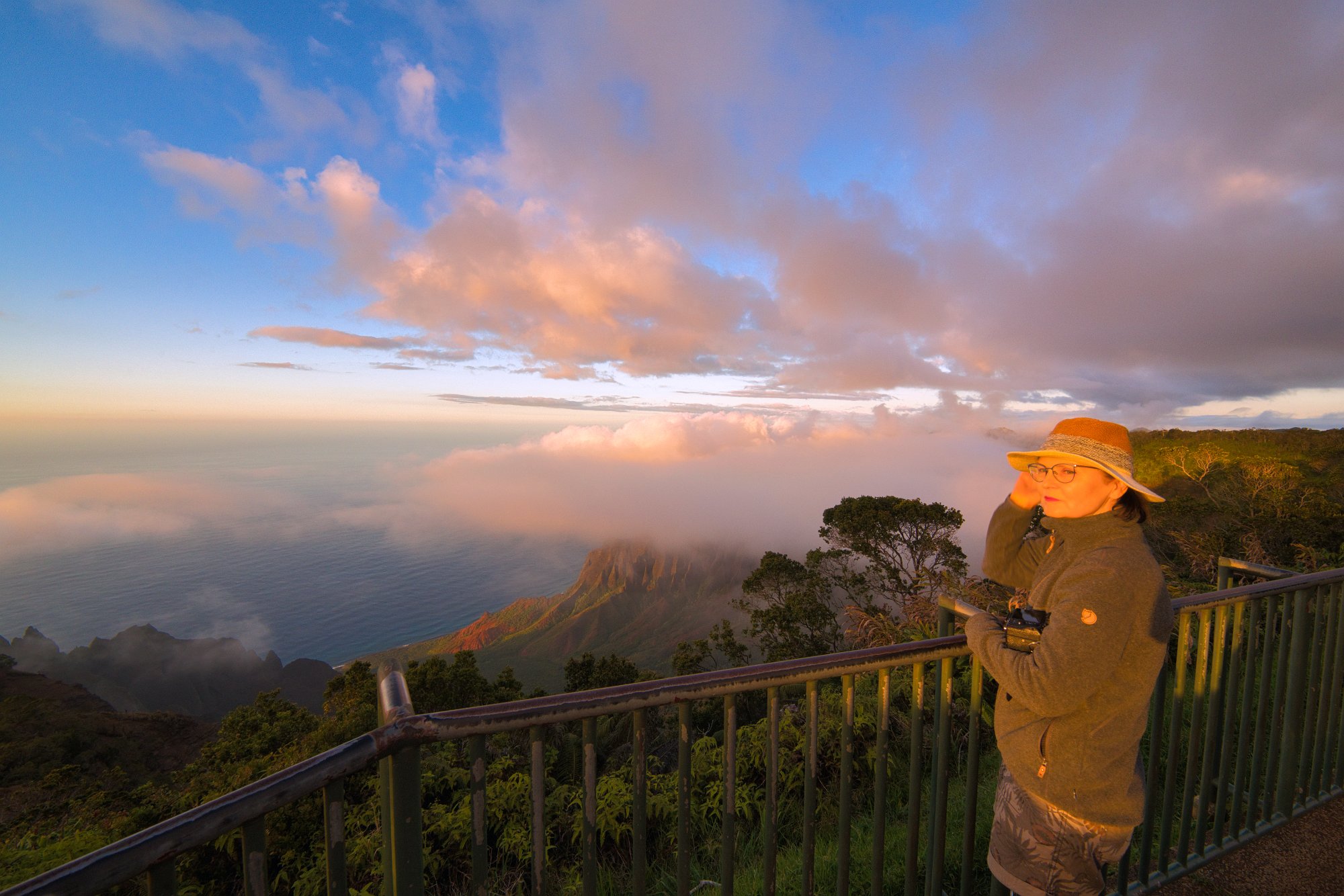 Am vorletzten Outlook, dann Sonnenuntergang (oder kurz davor) und zu diesem entscheidenden Moment zogen die Wolken herauf oder herab und versauten die Sicht, alles verschwand im Nebel.