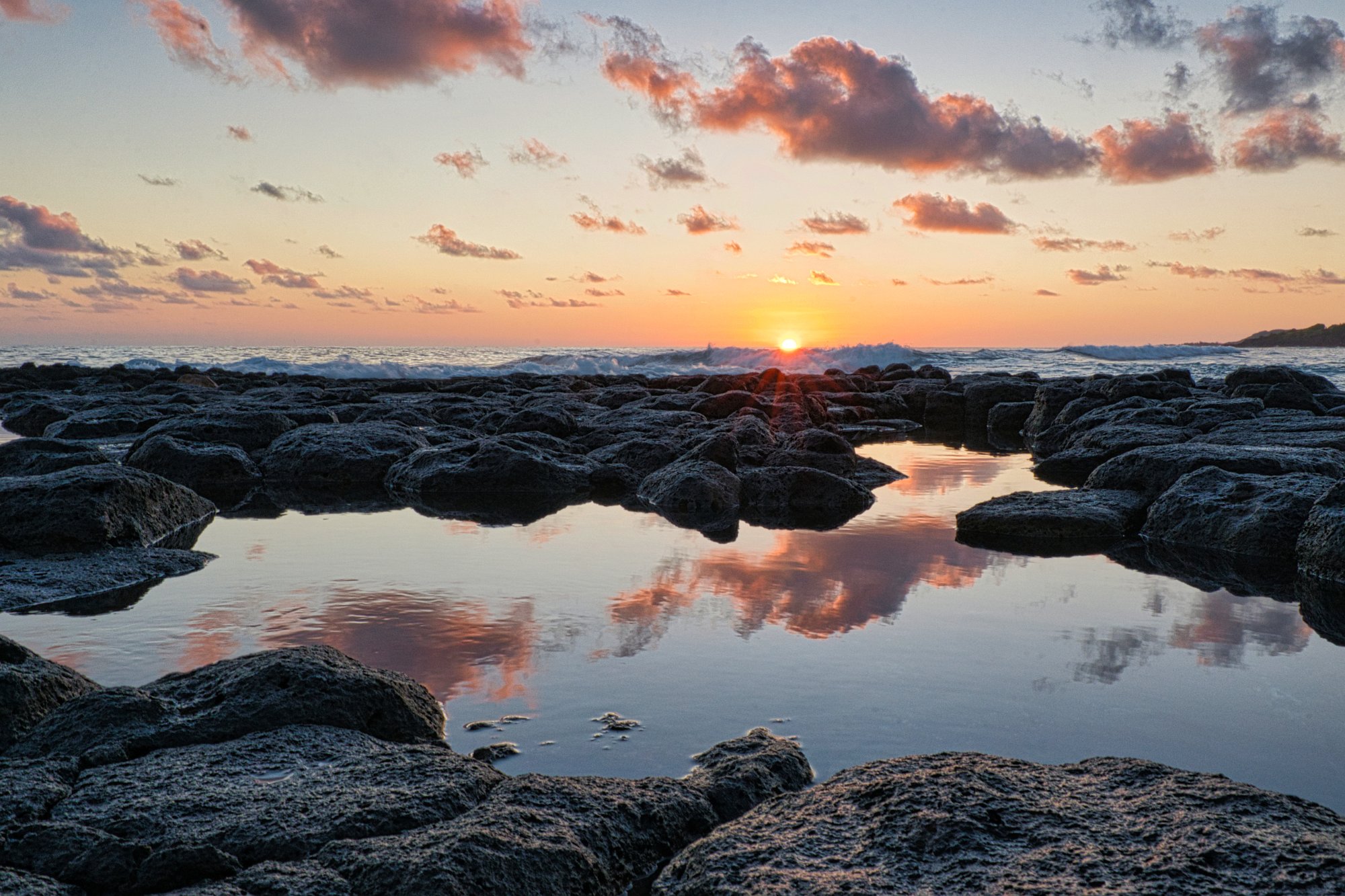 Toma wollte noch zum Strand. Der Strand an der Ostküste sagte ihr nicht zu, zu hohe Wellen, weswegen wir noch schnell zu dem Strand fahren wollten, wo wir schon einmal waren. Mit dem schnell wurde nichts. Wir gerieten in einen Stau, der auch im Buch angedroht wurde. Kurz vor Sonnenuntergang konnte Toma ihre Füße dann doch im Meerwasser anfeuchten und ich schaffte noch ein paar Aufnahmen vom Sonnenuntergang.
