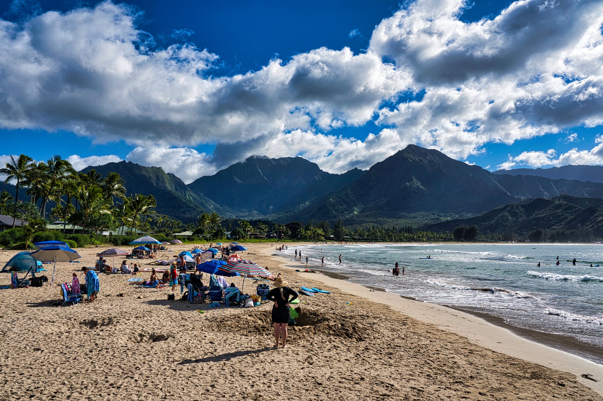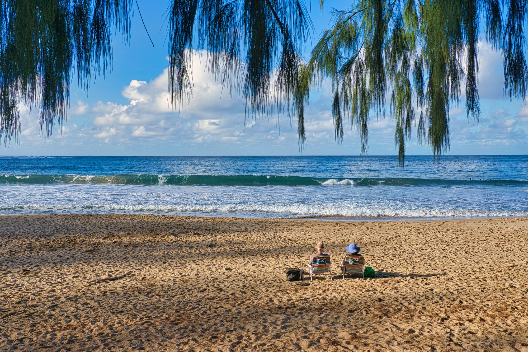 Den ersten Stopp machten wir an einem Sand-Strand. Diese sind nicht sehr häufig auf den hawaiianischen Inseln. Der Strand war etwas abgelegen von den Hotels und so waren hier hauptsächlich Locals am Wochenende zum Relaxen unterwegs. Sie kommen mit ihren riesigen Pick-ups, auf der Ladefläche die Surfbretter für die ganze Familie. Für uns war das Meer zu bewegt, denn stürmisch konnte man es nicht nennen.