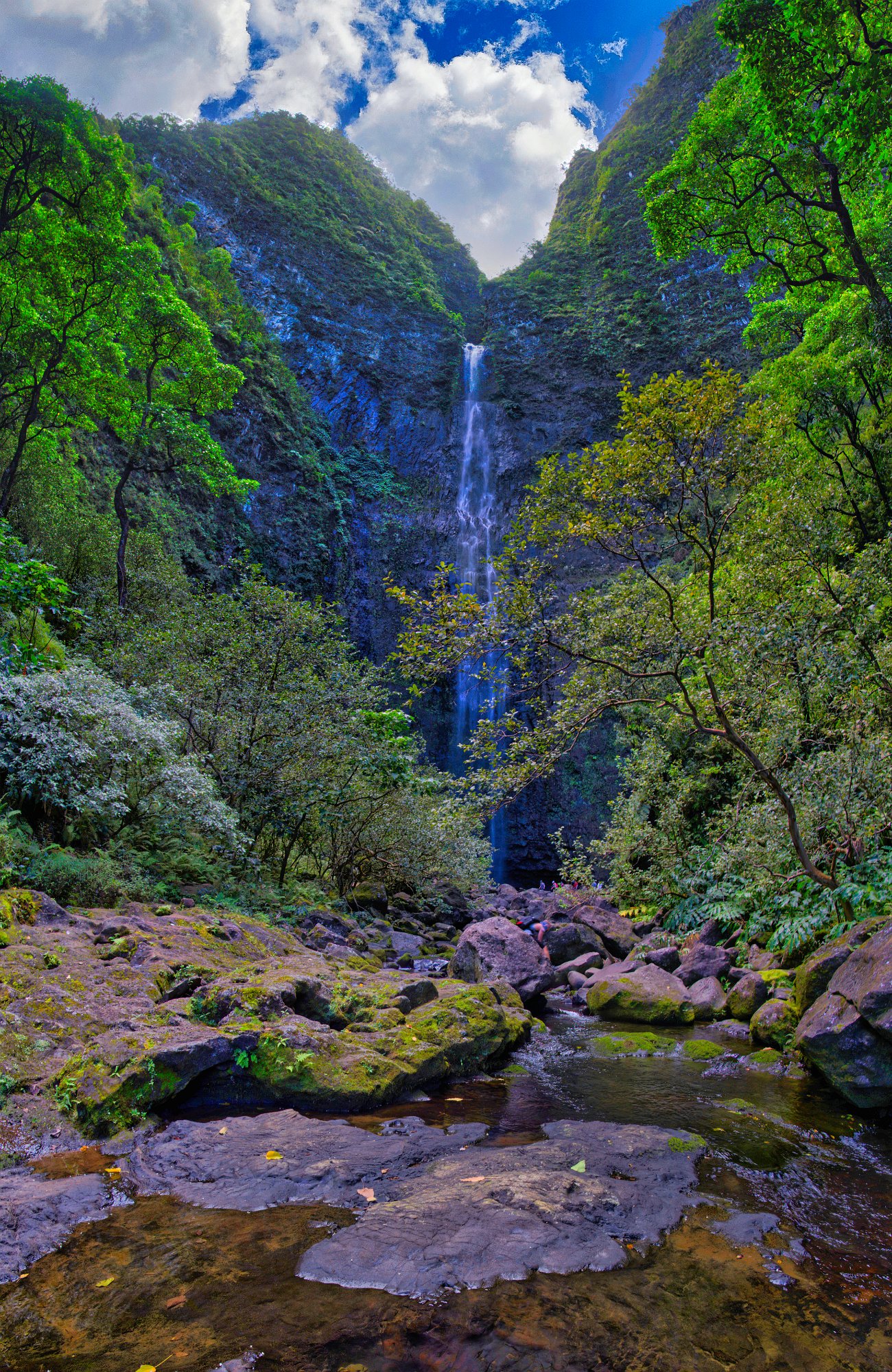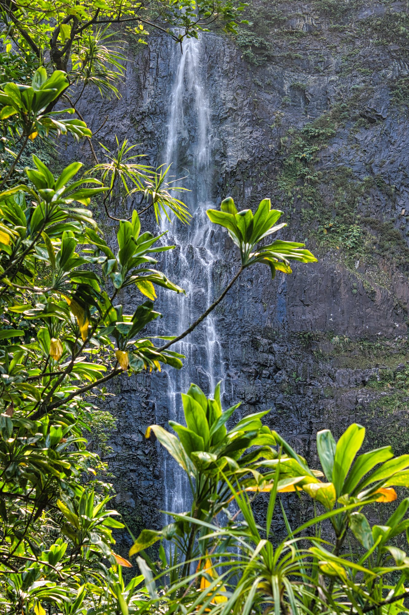 Die fehlenden Aussichten auf das Meer wurden kompensiert durch die vielfältigen tropischen Gewächse, den Bachlauf/Flusslauf, den wir dreimal überqueren mussten, die kleinen Wasserfälle, riesige Bambusgewächse und mächtige Bäume. Der Weg wurde hier schon ein wenig herausfordernder, je näher wir den Wasserfällen kamen. Hier gab es wirklich exponierte Stellen, die auch nass und glitschig waren.