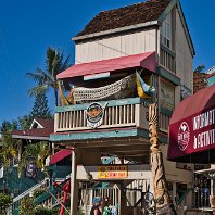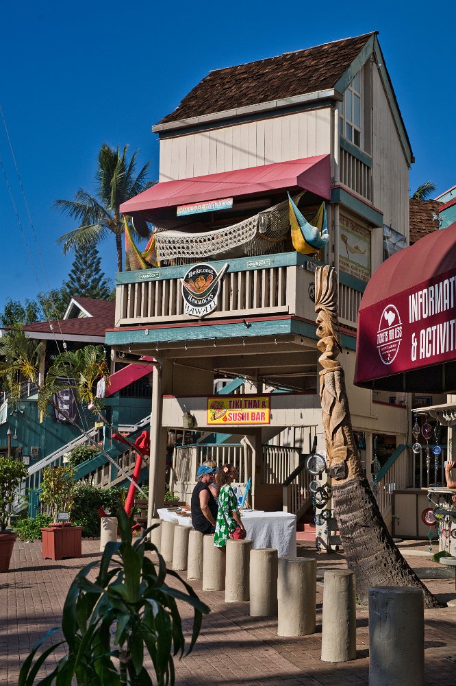 Ein nettes Städtchen im Karibiklook. Holzhäuser schön herausgeputzt, viele Touristen, viele Souvenirläden, Schmuck und Andenkenshops, dicke Amis in Shorts und Hawaiihemden ihre volle Fülle unverhüllt zeigend, relaxte Hawaiianer mit Surfbrettern, alles wuselte sich durch die Uferstraße. Vor der Stadt lag ein großes Kreuzfahrtschiff. Wir verbrachten gut 1,5 Stunden hier. Toma versuchte ein paar leichte Schuhe zu kaufen, weil ihre neuen Schlappen rieben. Erfolglos. Sie passten nicht in das Mainstream-Konsumangebot der hiesigen Läden.