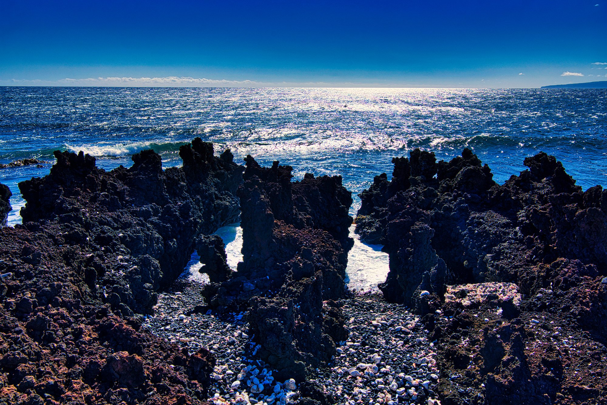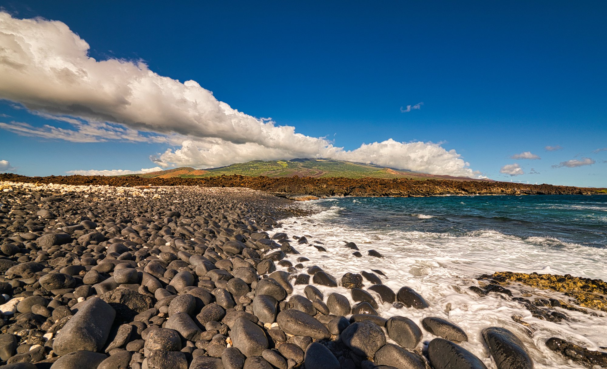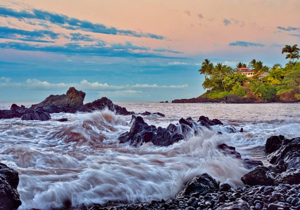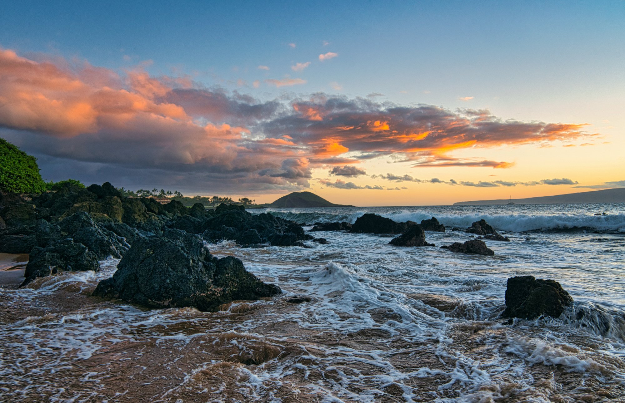 Palmen, schicke Wolken, Lavasteine, schäumendes Meer, alles Zutaten, die schöne Landschaftsbilder brauchen.