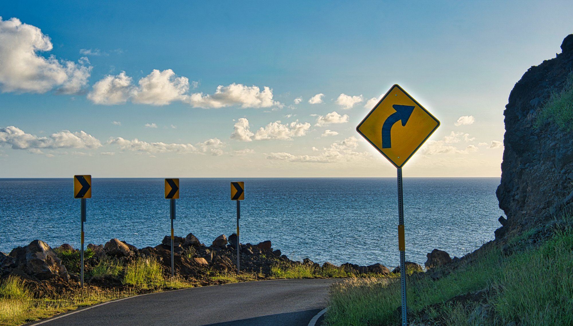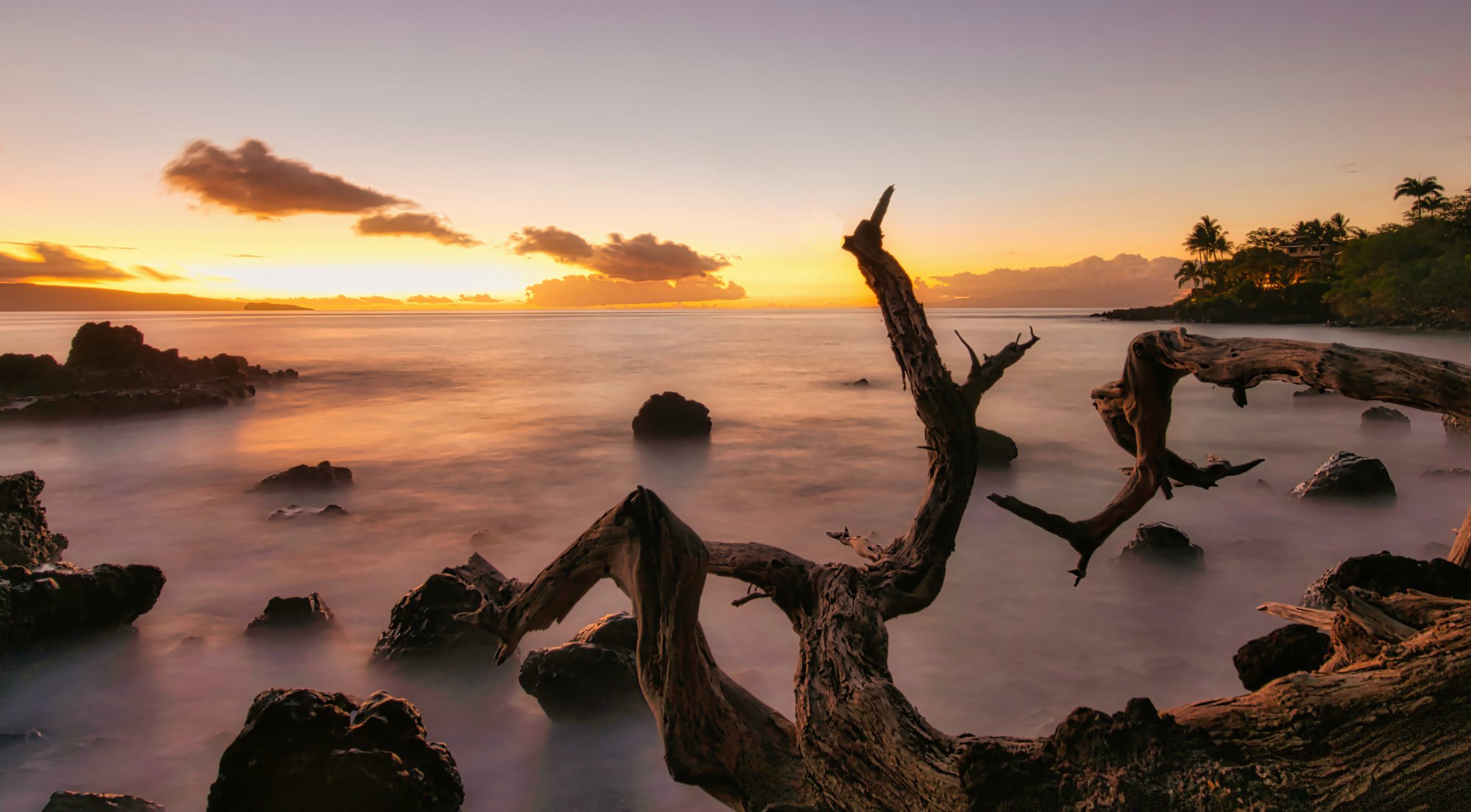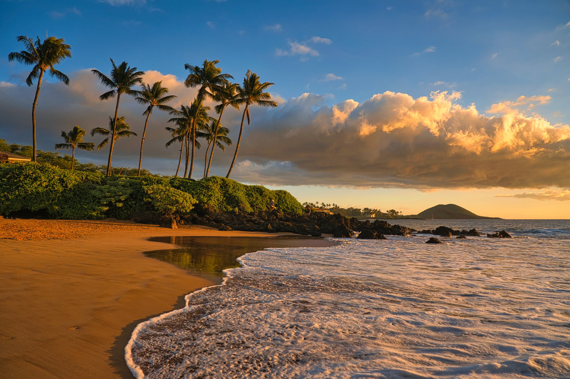Palmen, schicke Wolken, Lavasteine, schäumendes Meer, alles Zutaten, die schöne Landschaftsbilder brauchen.