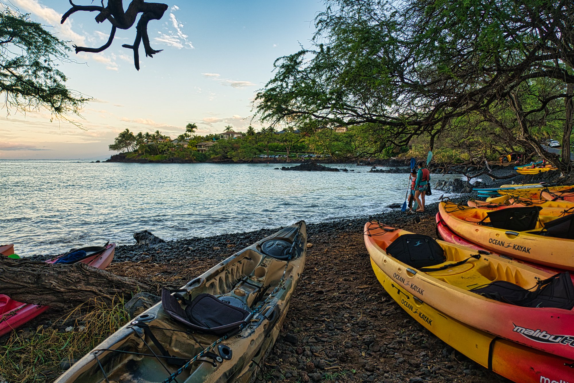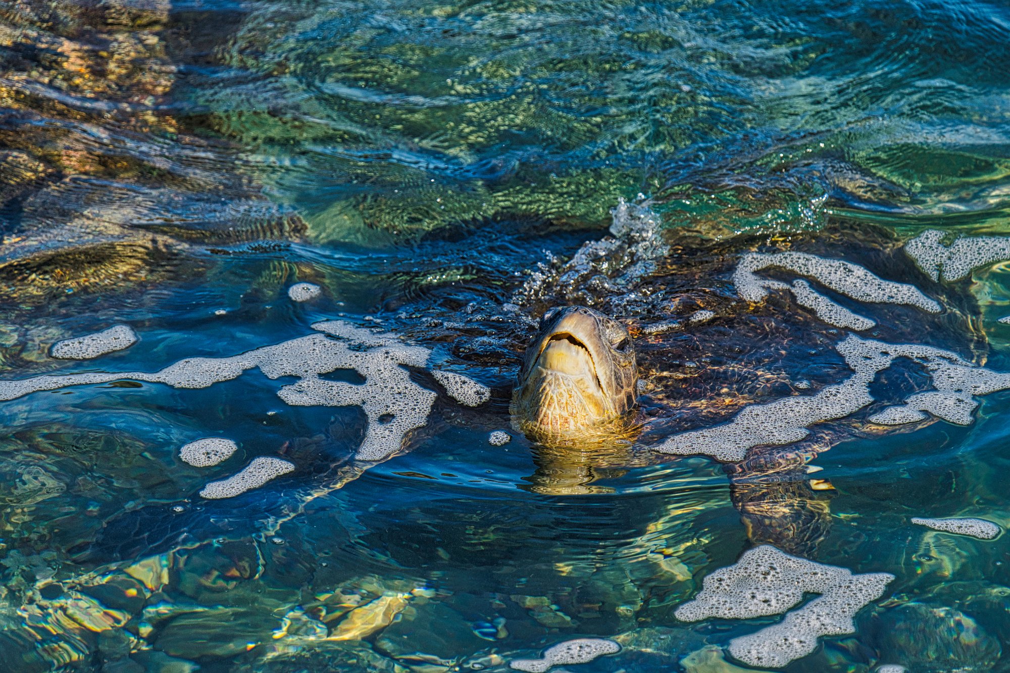 Wir machten Bekanntschaft mit einem Local, der so eine Art Tretbootfahren anbot. 120 Dollar plus Steuern und Trinkgeld pro Person (für etwa 2 Stunden). Das haben wir auf der Stever billiger. Aber während ich das Wasser im Fotoapparat festhielt, unterhielt sich Toma mit dem Hawaiianer. Und das mit dem Wasser meine ich fast wörtlich, da eine Welle so stark war, dass wir beide, Kamera und ich, ziemlich nass wurden. Ich glaube, da bin ich noch mit einem grün-gelb-blauen Auge davongekommen. Wobei jetzt ab und zu mal so eine Fehlermeldung kommt, dieses Gerät ist zur Kamera nicht kompatibel. Vielleicht meint sie mich damit. Egal.