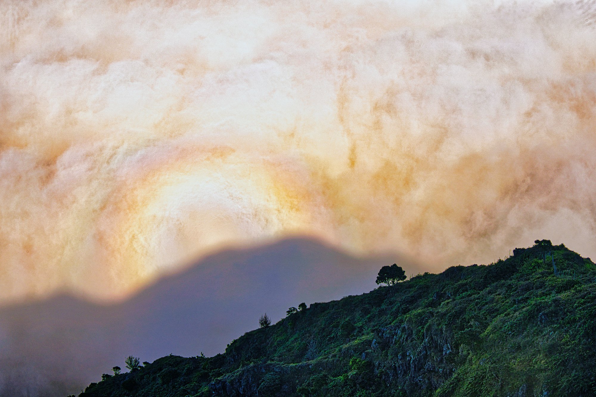 Kaum war die Sonne in den Wolken verschwunden, brausten die ersten los, obwohl die Farben am Himmel jetzt noch viel intensiver, satter wurden und der Blick vom Berg in die Wolken hinein in nichts von seiner Anziehungskraft verlor.
