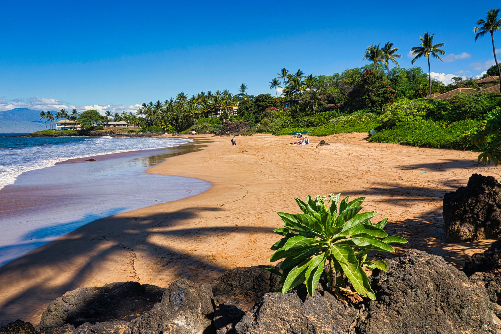 Auf dem Rückweg hielten wir nicht an, erst wieder in Kihei am Stadtstrand, wo Toma dann wirklich mit dem ganzen Körper ins Wasser ging.