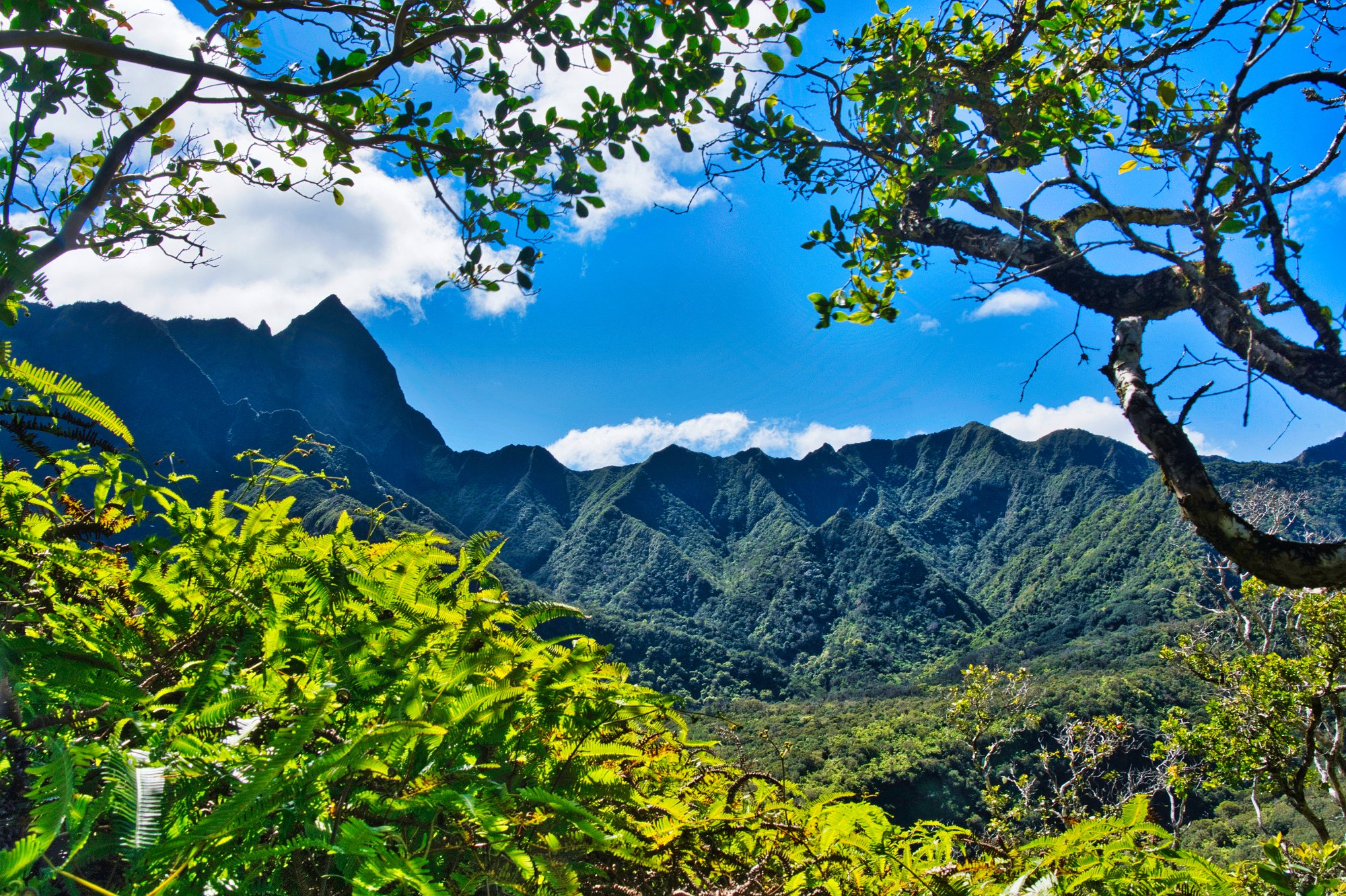 Der Pfad im Tal, übrigens ein tropisches Tal, drei Seiten umschließen es mit hohen Felswänden und wenn man zur freien Seite hinausschaut sieht man das Meer. Der Park, schön angelegt, asphaltiert zum Großteil, war eine halbe Meile lang. Dafür bezahlten wir 20 $. Als wir nach 10, nein es waren eher 5 Minuten an der höchsten Stelle angekommen waren, mit Blick auf die Nadel, saß ein junger Mann im Schneidersitz und brachte Singing Balls zum Klingen. Wir kamen ins Gespräch. Über Tibet und Aussteiger…. und dann fragte ich ihn noch, ob es hier noch andere Pfade, Trecks gab? Direkt neben der Holzhütte / dem Unterstand, in dem er saß, ging ein Pfad in die Berge. Wir hätten ihn nie gesehen, zumal ein Geländer den Weg begrenzte und hinter dem Geländer noch ein Schild stand:“ No Access“. Da gehen wir doch als Deutsche niemals durch (Man musste über das Geländer klettern!, um den Weg zu betreten.). Toma wollte ihn gehen. 1,5 Meilen mit der Hoffnung in Mitten der Berge auf einem Aussichtspunkt zu stehen und einen 360 Grad View zu haben. Das schien ihr es wert zu sein. Wie uns der „Hippi“ erklärt hat, geht es da wohl um Haftungsfragen.