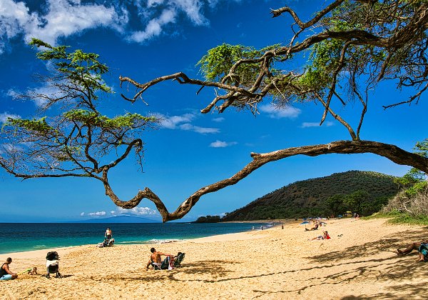 Das Einkaufzentrum (Lebensmittel) wäre ganz in der Nähe, zwei Meilen entfernt. Unser erstes Ziel. Wir verfehlten es im ersten Anlauf. Wir unterschätzten 2 Meilen, irrten durch Kihei und lernten so unsere nähere Umgebung kennen. Ein netter Strand, eine Hauptstraße entlang des Ufers, Hotels, Ferienwohnungen, Geschäfte alles ziemlich amerikanisch. Der Strand ist frei zugänglich, also nicht wie in Florida, wo man als nicht Einwohner und Besitzer eines Strandgrundstücks sich irgendwie ans Wasser schleichen muss.