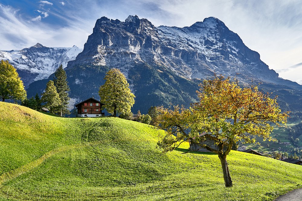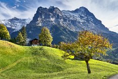 Am 2. August 2018 verließen wir Grindelwald, heute sind wir zurück. Wenn damals unsere letzte Handlung war ein Ticket nach Hause zu kaufen, kurz danach als wir erfahren hatten, dass Steine im Tunnel zum Weg zum Jungfrauenjoch heruntergefallen waren und ein Zugverkehr zum höchsten Bahnhof Europas nicht möglich ist, so war unsere erste Handlung heute in Grindelwald zum Bahnhof zu gehen und ein Ticket zum Jungfrauenjoch für morgen früh zu kaufen. Wir nahmen die billigste Variante erster Zug - verbilligtes Ticket. Nur 252 SF, da wir auf dem Rückweg nur bis zum Kleinen Scheidegg fahren werden und von dort unsere Wanderung beginnen. 14 Tage von Grindelwald nach Grindelwald. Das Auto wird hier auf uns warten, natürlich nicht umsonst, sondern für einen Schweizer Obolus. Wir schreiben den 12. Oktober, also schon ganz schön Herbst. Man sieht es überall an den Bäumen, die Berge sind schon mit Schnee bepudert, doch das Wetter war heute geradezu sommerlich. Unterwegs hatten wir bis zu 25 Grad Celsius.