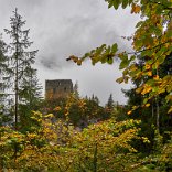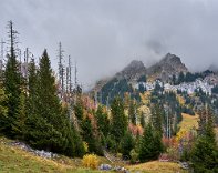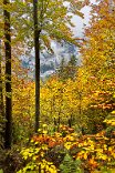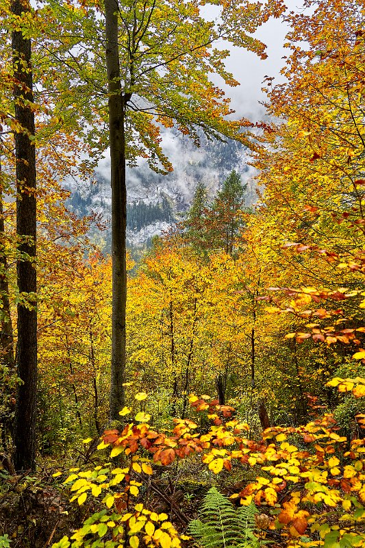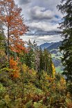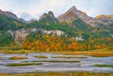 Eine wunderschöne Wolke hing über dem Berg hinter dem Hotel. Das Morgen-Rot der Wolke harmonierte mit den gelben Blättern der Laubbäume, die den Bach/Flusslauf säumten.
