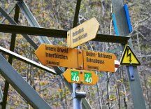 Das erstes Etappenziel heute hieß Innertkirchen. Etwa 2,5 Stunden Wanderung. Stürmischen Schrittes, wie der Wind von hinten, der Föhn, der von Süden blies, gingen wir los. Es war ein wenig wie zum Schluss des vergangenen Tages, der Weg führte nicht weit von der Straße entfernt, was oft sehr schön war, manchmal auch effizient dazu, weil wir abkürzten, aber manchmal auch ganz schön nervig, wenn der Weg von der Straße wegführte, die doppelte Entfernung zurücklegte und wieder auf die Straße traf und man nicht wusste warum. Tunnel umgehen, naja, da kamen immer noch etliche Höhenmeter dazu, weil wir diese meist oberhalb umgingen, also erst nach oben und dann wieder bergab zur Straße.