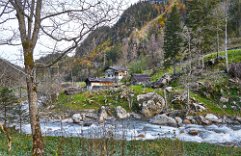 Spektakuläres gab es bis Innertkirchen nicht zu berichten. Kurz vor 12.00 Uhr erreichten wir das Stadtzentrum und gingen in die Information, uns nach der Aareschlucht zu erkundigen. Als wir dann im selben Gebäude in den Coop gehen wollten, rannte Toma fast gegen die geschlossene Tür. Mittagspause. Wir wollten uns aber gerade etwas für unsere Mittagspause kaufen. Pech gehabt. Auf der Straßenseite gegenüber gab es das Restaurant / Hotel Post. Essen war so lala. Toma aß Randensalat. Auf Deutsch Rote-Beete-Salat. Meine Spagetti – Polonäse waren versalzen. Halb gesättigt gingen wir in Richtung Aare-Schlucht.