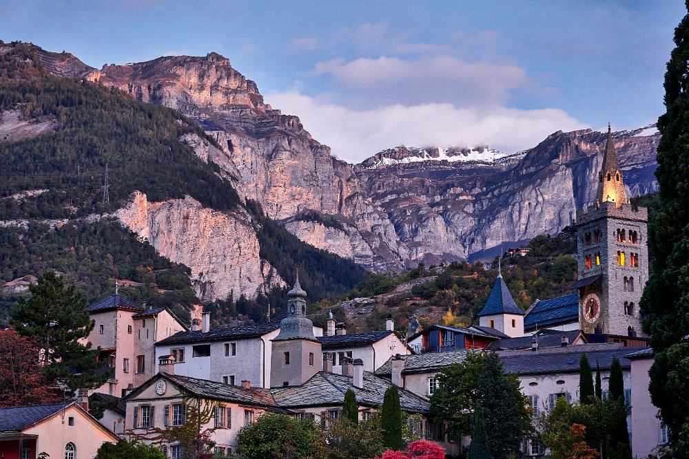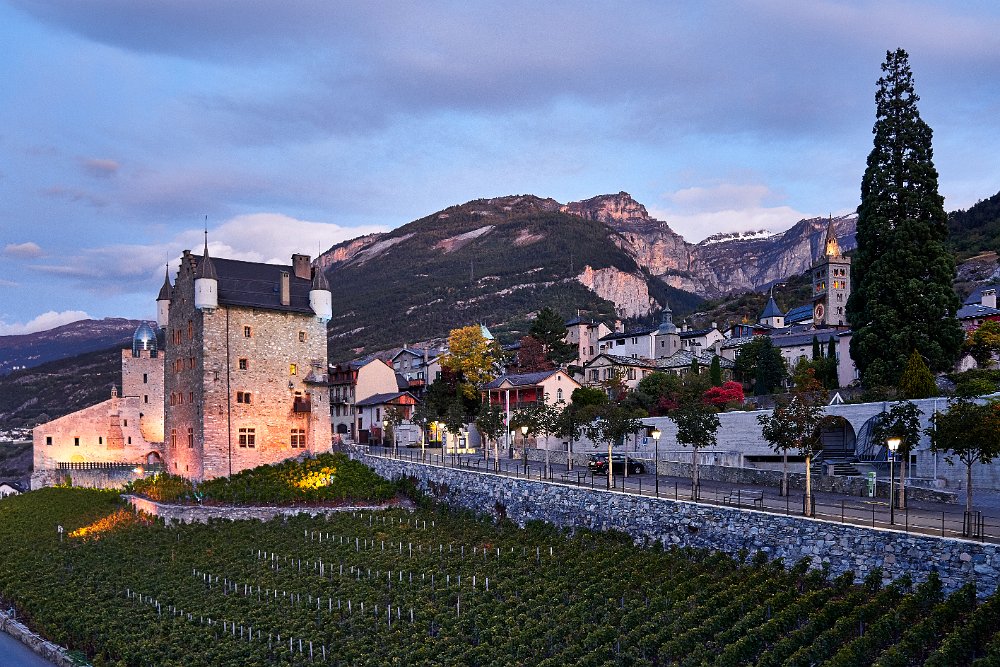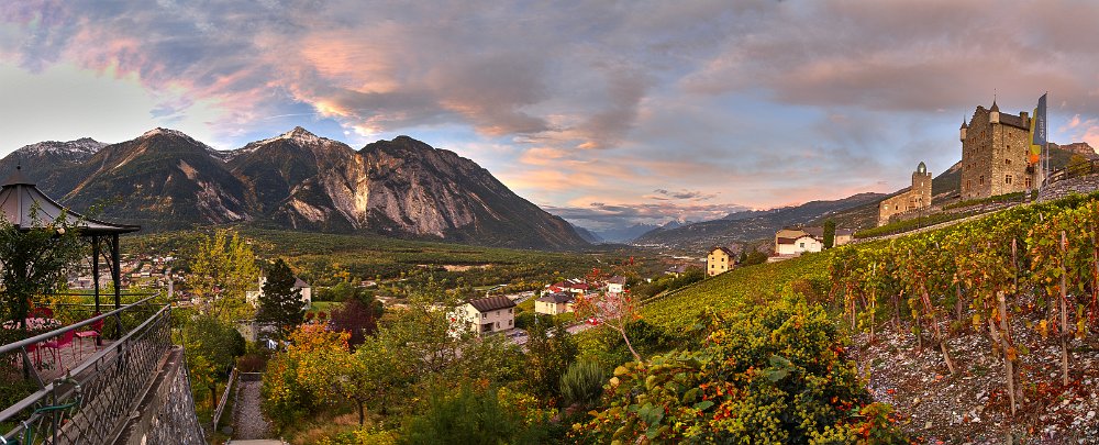 Leuk, ein nettes Städtchen, das Schlosshotel ein angenehmes Haus, das Billigste, was wir auf unserer Reise bisher hatten. Abendbrot in der Krone.