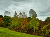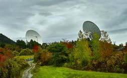 Der Bus fuhr nicht dort lang, sondern über Guttet, und Feschel. Da der Bus aber die schnellste Möglichkeit war, in ein Hotel zu kommen (die Uhr war schon fast 5.00), entschlossen wir uns, wie von der netten Dame der Information vorgeschlagen, mit dem Bus nach Leuk zu fahren. Dieser fuhr oberhalb von Leuk vorbei an einer Sattellittenbeobachtungsanlage Lausch und Guck). Ein beeindruckender Komplex von riesigen Sattellittenschüsseln und anderen Abhöreinrichtungen.