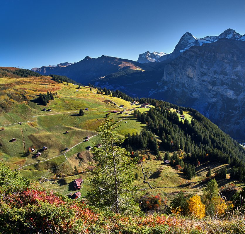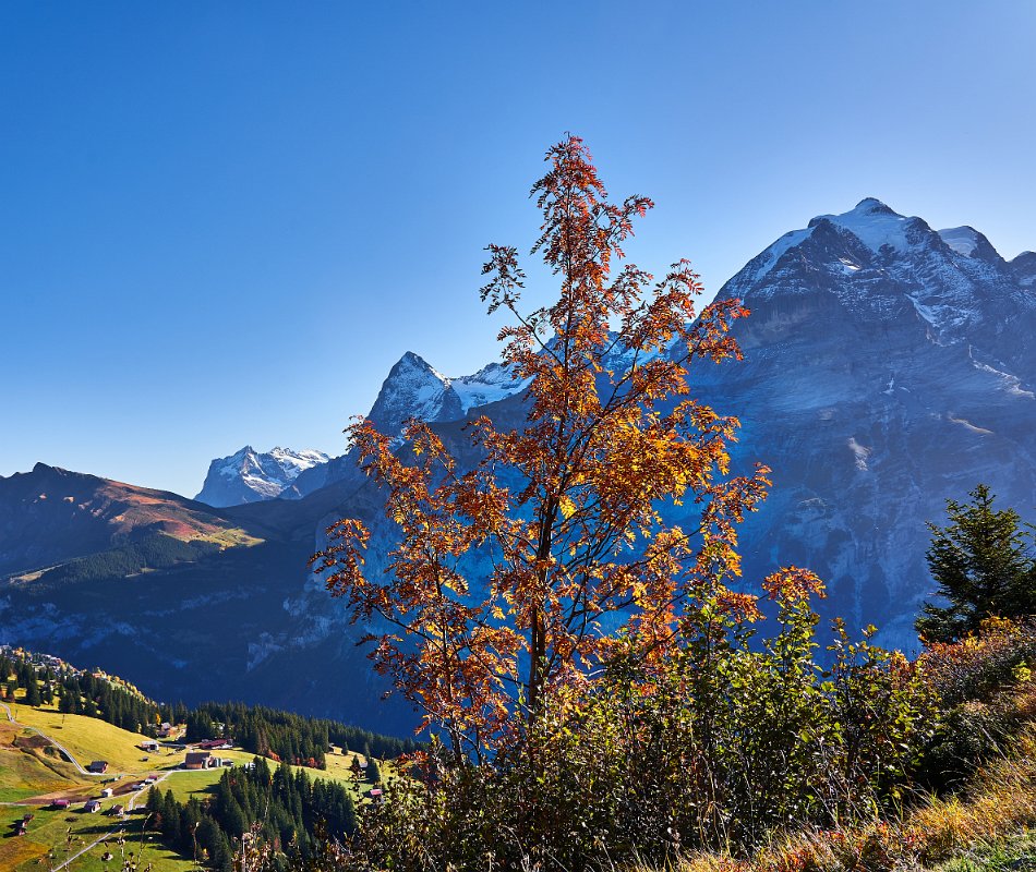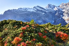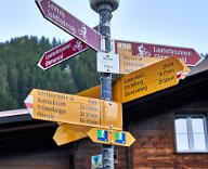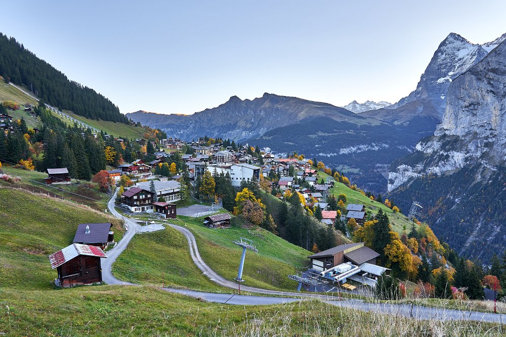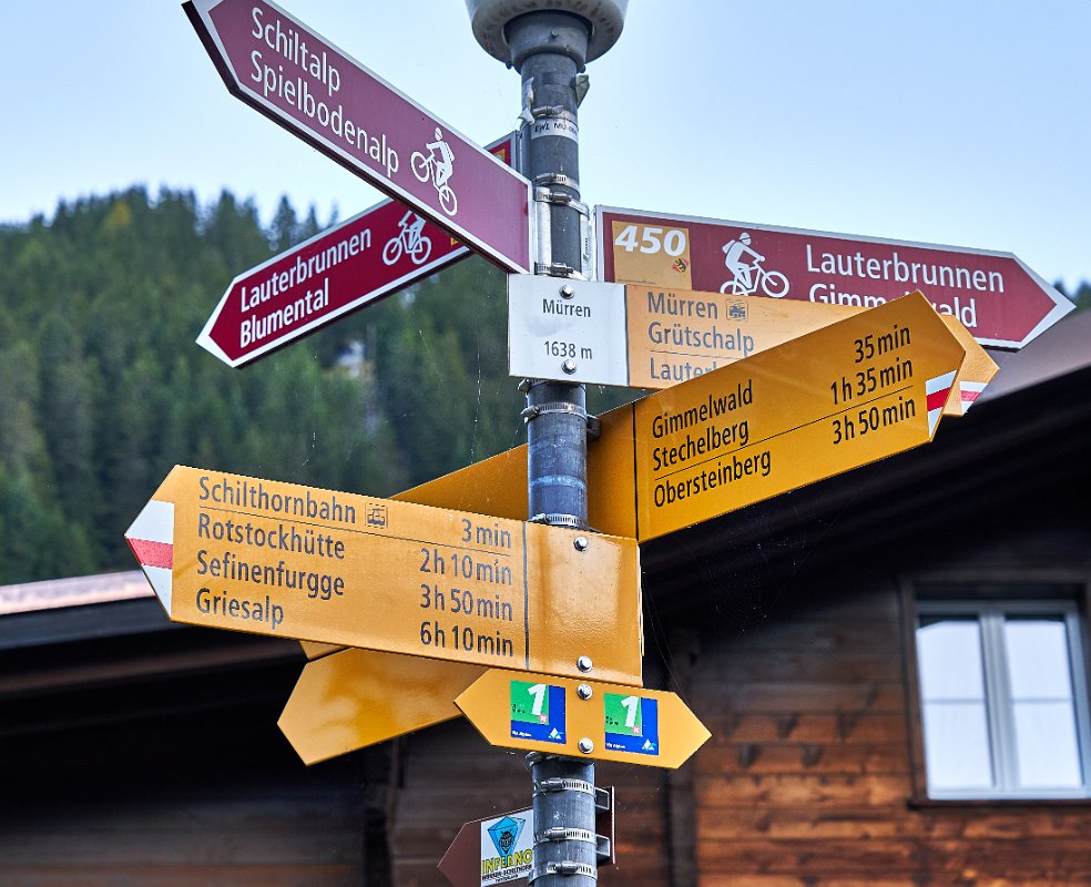 Der Mann an der Info erklärte mir die Berge, die ich gestern so viel fotografiert hatte. Eiger, Mönch, schwarzer Mönch im Vordergrund und irgendeine Spitze, die ich schon wieder vergessen habe, dahinter. 8.30 Uhr verließen wir die Unterkunft (die auch den Skiläufern im Winter 17-19.Januar- als Unterkunft für ein Weltcuprennen dient - das Rennbüro hatte schon geöffnet.)