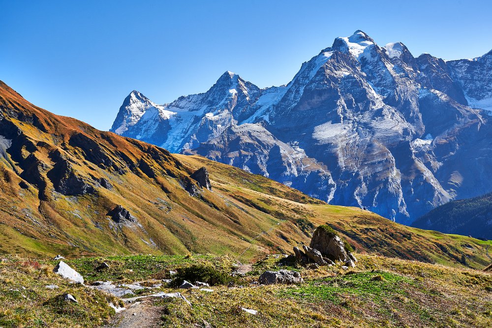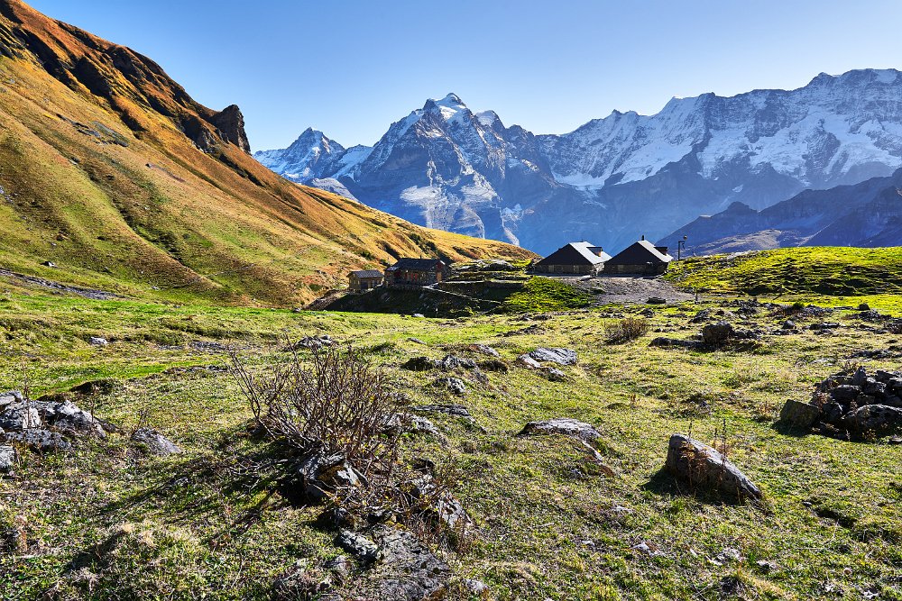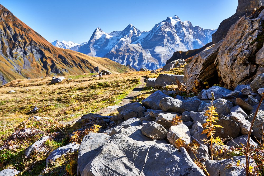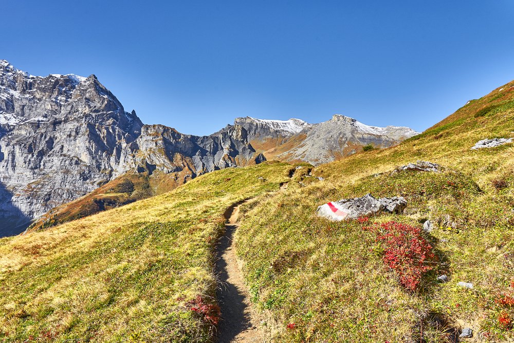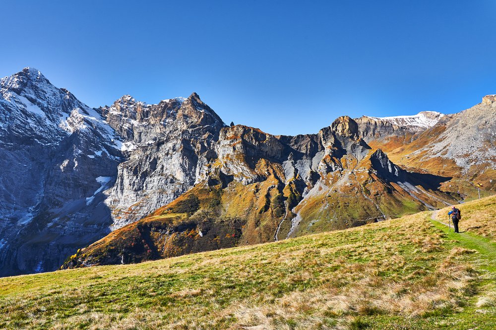 Viele Wanderer waren trotz des herrlichen Herbstwetters nicht unterwegs. Mit 6,5 Stunden war die Strecke bis zur Griesalp ausgewiesen. (Gehzeit) Wir benötigte 2 Stunden mehr, machten aber auch einige Pausen, einmal oberhalb der Rostocker Hüte, und beim Abstieg am Fluss.