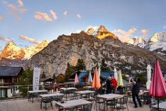 Das Restaurant hatte eine Aussichtsterrasse, von der wir die Berge sehen konnten, die von der Abendsonne angestrahlt wurden. Toma ist kaputt. Alles tut weh, von Kopf bis Fuß. Morgen ausschlafen und heute zeitig ins Bett - 20.35 Uhr - Gute Nacht