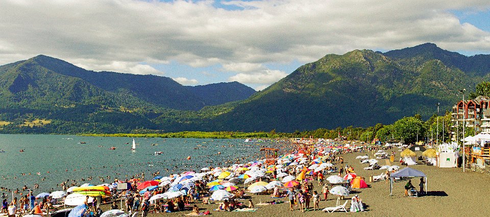 Pünktlich 10 vor Neun, wie gestern angekündigt, holte uns Marta ab. Sie überreichte uns einen Ablaufplan der Reise bis nach Santiago de Chile. Hier stand jetzt alles drin, und klopf, klopf, klopf auf Holz, hoffentlich klappt es auch so. Das Schlimmste, die Ungewissheit, ist uns somit genommen. Heute geht es mit dem Linienbus nach Pucon. Problemlose Fahrt, wir nicken ab und zu ein. In Pucon werden wir in Empfang genommen und zum Hotel gebracht. Kurze Instruktion für morgen. Abends gehen wir uns noch in der Agentur für die Besteigung einkleiden. Wir beschließen in der Stadt Mittagessen zu gehen. Keine 100 Meter vom Hotel entfernt sehen wir einen Obst und Gemüseladen und gehen hinein. Toma kauft kräftig ein und das Mittagessen findet im Zimmer statt, obwohl das Zimmer sehr klein ist. Sehr lecker. Tomaten und Avocadosalat, Oliven, Kirschen, Bananen, Pfirsiche mit ein wenig Brot. Dann gehen wir den einen Kilometer ins Zentrum und gleich in ein Restaurant Tee trinken und Kaffe und Eis essen. Alle Voraussetzungen sind erfüllt, dass wir morgen Durchfall haben werden. |