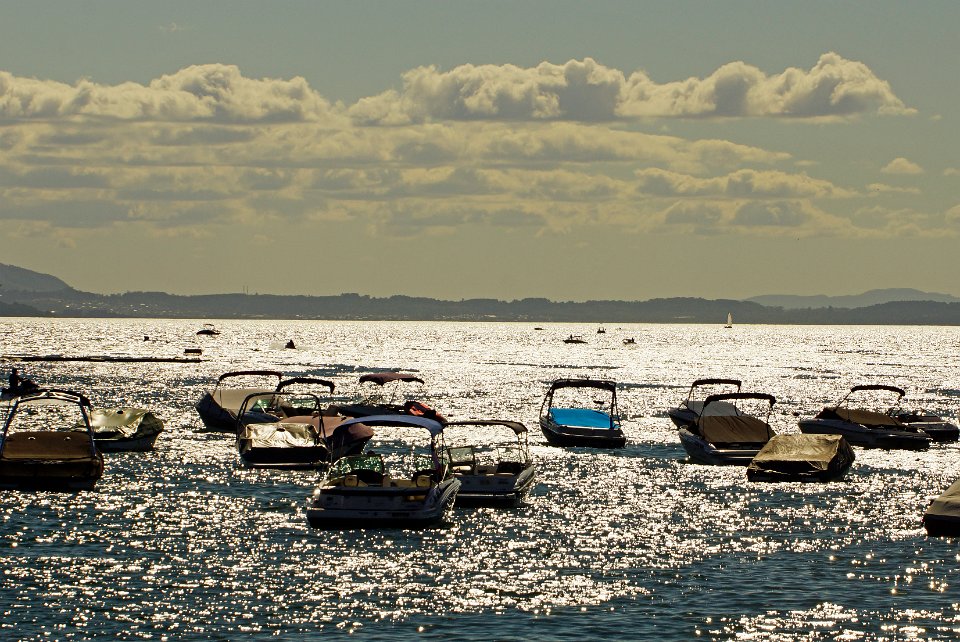 Der Ort bietet alles, was Touristen wollen, Berge, dazu noch einen Vulkan, zwei Seen, einer davon mit einem großen Strand, viele Restaurants, Sonne, blauen Himmel, ...(Es war nur der eine See, wie wir am nächsten Tag von oben sehen würden, getrennt durch eine Halbinsel.) |