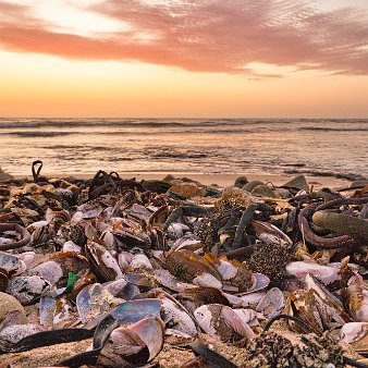 Swakopmund (von Khoekhoegowab Tsoakhaub für Exkrement-Öffnung, da der Swakop, wenn er den Atlantik erreicht, viel Schlick mit sich trägt).
